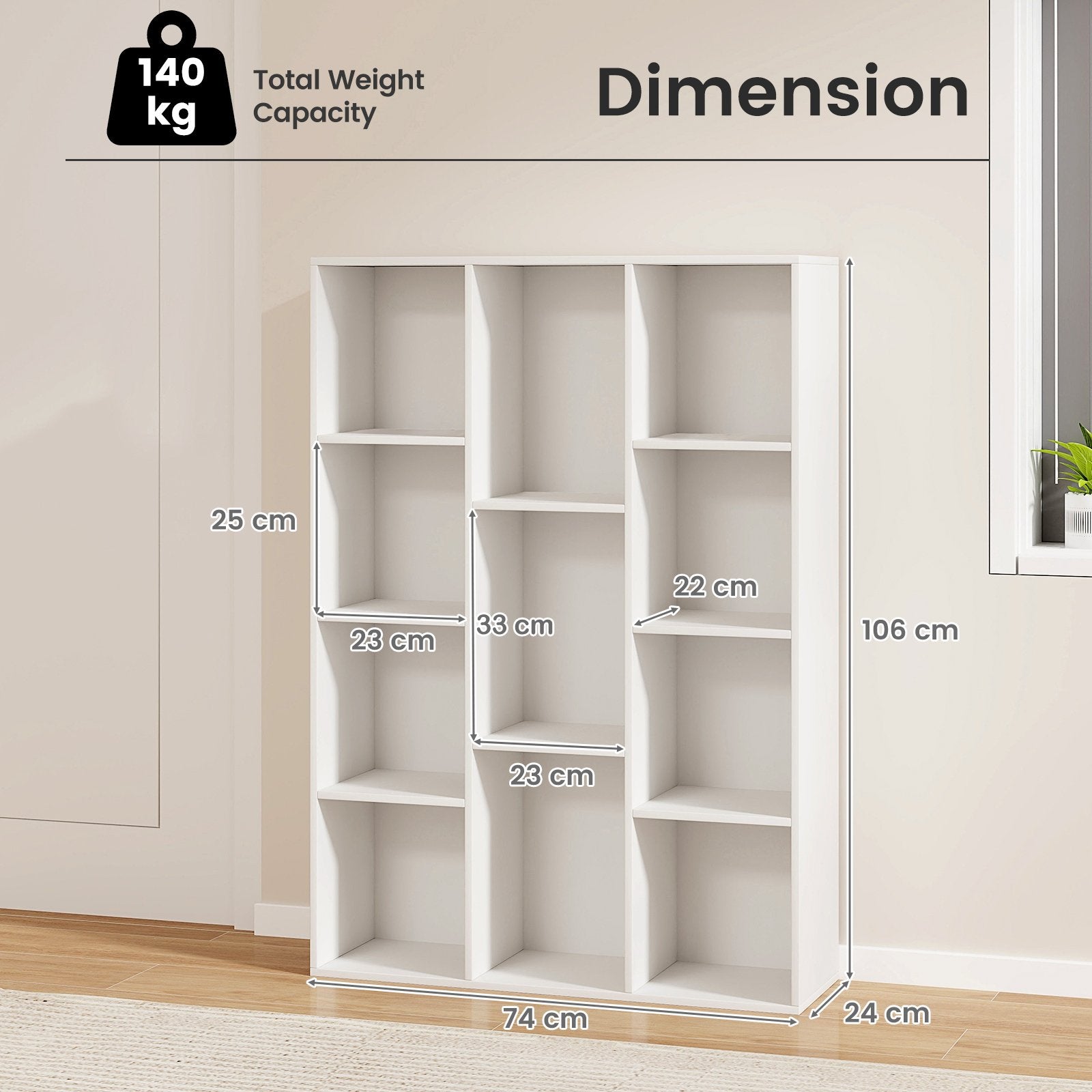 11-Cube Bookcase Modern Geometric Bookshelf with Anti-tipping Kits-White