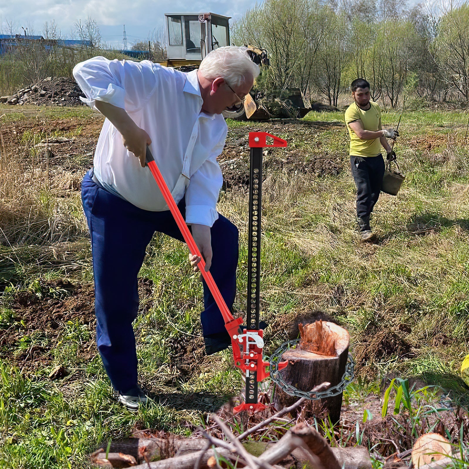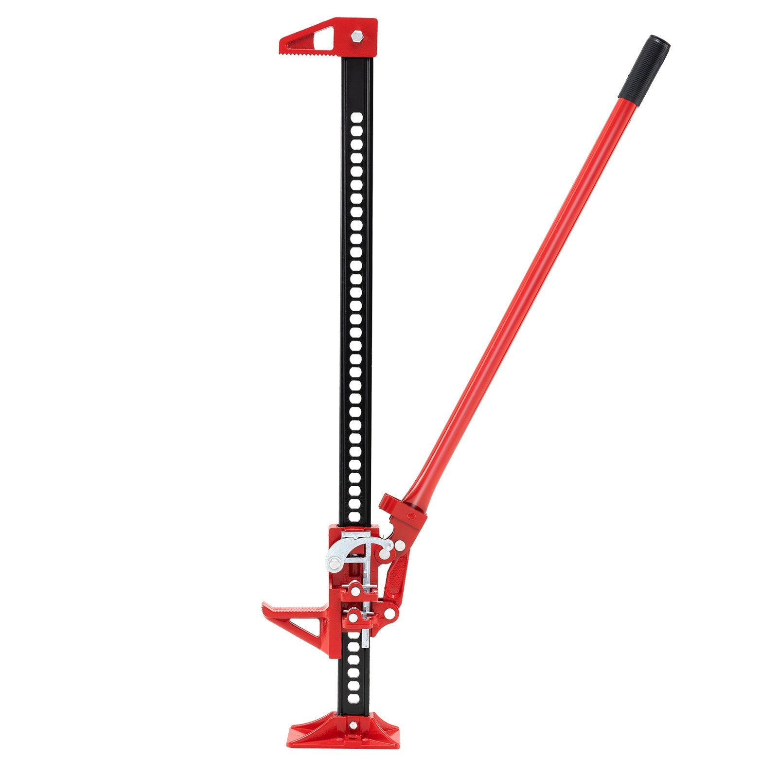 Boasting a lifting height range from 15-112 cm and a robust 3000 kg capacity, this heavy-duty jack serves as a go-to tool for various vehicles including cars, trucks, jeeps, ATVs, UTVs and SUVs. Crafted with secure 15 mm ratchet holes for enhanced safety and minimal slippage, this versatile and rustproof metal tool lifts, pulls and tugs, ready for any outdoor challenge. Whether navigating mud, pulling stumps or performing maintenance, our farm jack offers the durability and reliability needed for outdoor adventures. Adjustable Lifting Range: This car jack, with an adjustable lifting height from 15 cm to 112 cm, accommodates various vehicle types and sizes, proving indispensable for vehicle owners. 3000 kg Lifting Capacity: With a staggering 3000 kg capacity, this off-road utility jack is built to handle heavy loads, making it perfect for various vehicles including cars, trucks, jeeps, ATVs, UTVs and SUVs. Ratcheting Mechanism: This high lift jack features 15 mm ratcheting holes and a secure, easy-to-use system, ensuring vehicle stability and security during lifting and lowering. Heavy-duty Construction: Crafted from rustproof and stable metal, this heavy-duty jack is designed to withstand the test of time, offering a dependable lifting solution for various off-road needs. Versatile Utility Jack: This versatile utility jack is more than just for lifting. It is a companion for outdoor adventures, useful for pulling posts, uprooting trees and serving as an emergency winch.