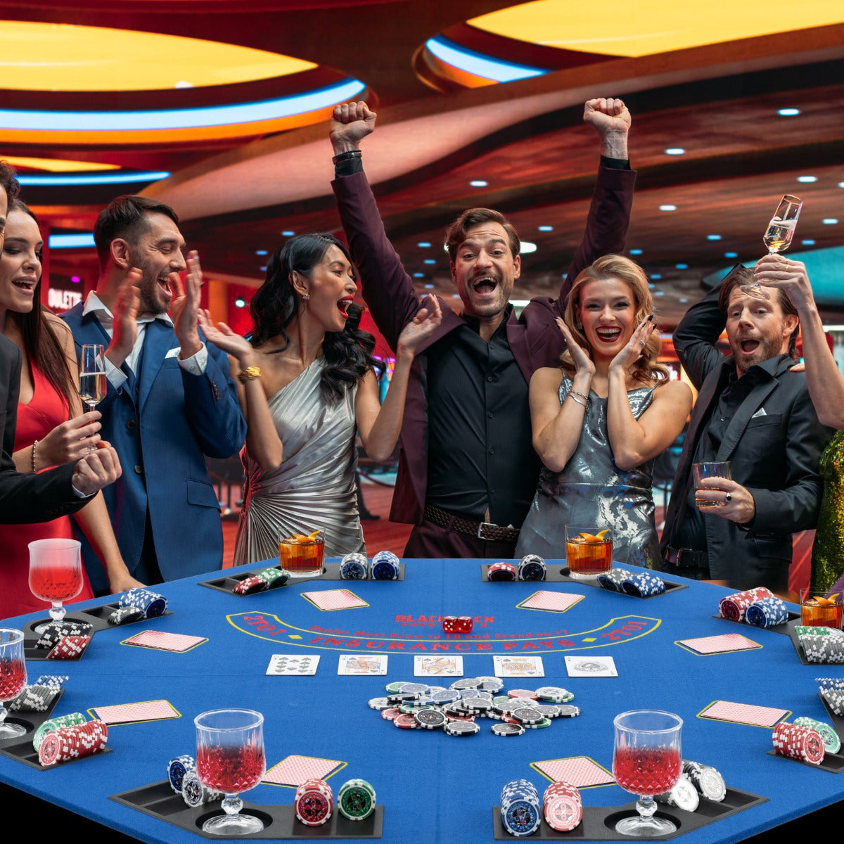 This 120cm 8-player foldable poker table top provides ample space for your friends and family to gather around and enjoy classic card games like Texas Hold’em and Blackjack, play chess games, or dice games. What sets this table apart is its space-saving four-fold design, making it easy to store and transport with the included carrying bag. Thus, you can bring the gaming excitement wherever you go, whether it’s a friend’s house, a party, or a camping trip. Additionally, thanks to its luxurious felt surface, the mat allows cards to glide effortlessly during shuffling and dealing, while the interior MDF panels ensure excellent durability. Furthermore, with designated card placement areas, individual cup holders, and poker chip trays, every game feels like a high-stakes casino affair. Elevate your game nights and create unforgettable memories with this top-of-the-line gaming accessory. Spacious 8-Player Poker Tabletop: This 120cm octagonal Texas poker table top provides ample space for 8 players, allowing you to comfortably enjoy casino games with family and friends. It is the perfect companion for a range of card games, such as Texas Hold'em, Blackjack, Bridge, Five Card Stud, etc.Space-Saving Quad-Fold Design: Unlike other poker table tops that fold in half, this poker tabletop features quad fold design, which takes up less space for storage. And it is equipped with a convenient carrying bag, making transportation a breeze.Professional Gaming Experience: To create an authentic casino atmosphere right in your own home, the blackjack poker table mat is designed with dedicated areas for card placement, individual cup holders to keep drinks secure, and integrated poker chip trays for organized gameplay.High-Quality Materials: The board game mat adopts a soft felt surface for smooth card sliding, and anti-slip bottom to prevent shifting during intense games. Additionally, it is reinforced with thick MDF panels, ensuring excellent stability and durability.Versatile Application: Whether it’s a game night at home, a birthday party, a picnic in the park, or a camping adventure, this 8-person poker table top is a perfect choice for passing the leisure time. Gather your friends and family for a poker night to remember!