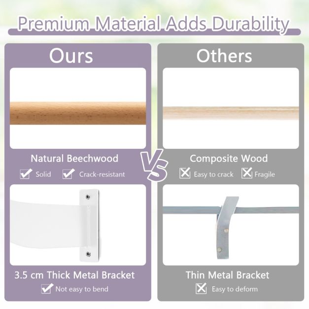 120CM Wall-Mounted Beech Wood Ballet Barre-White