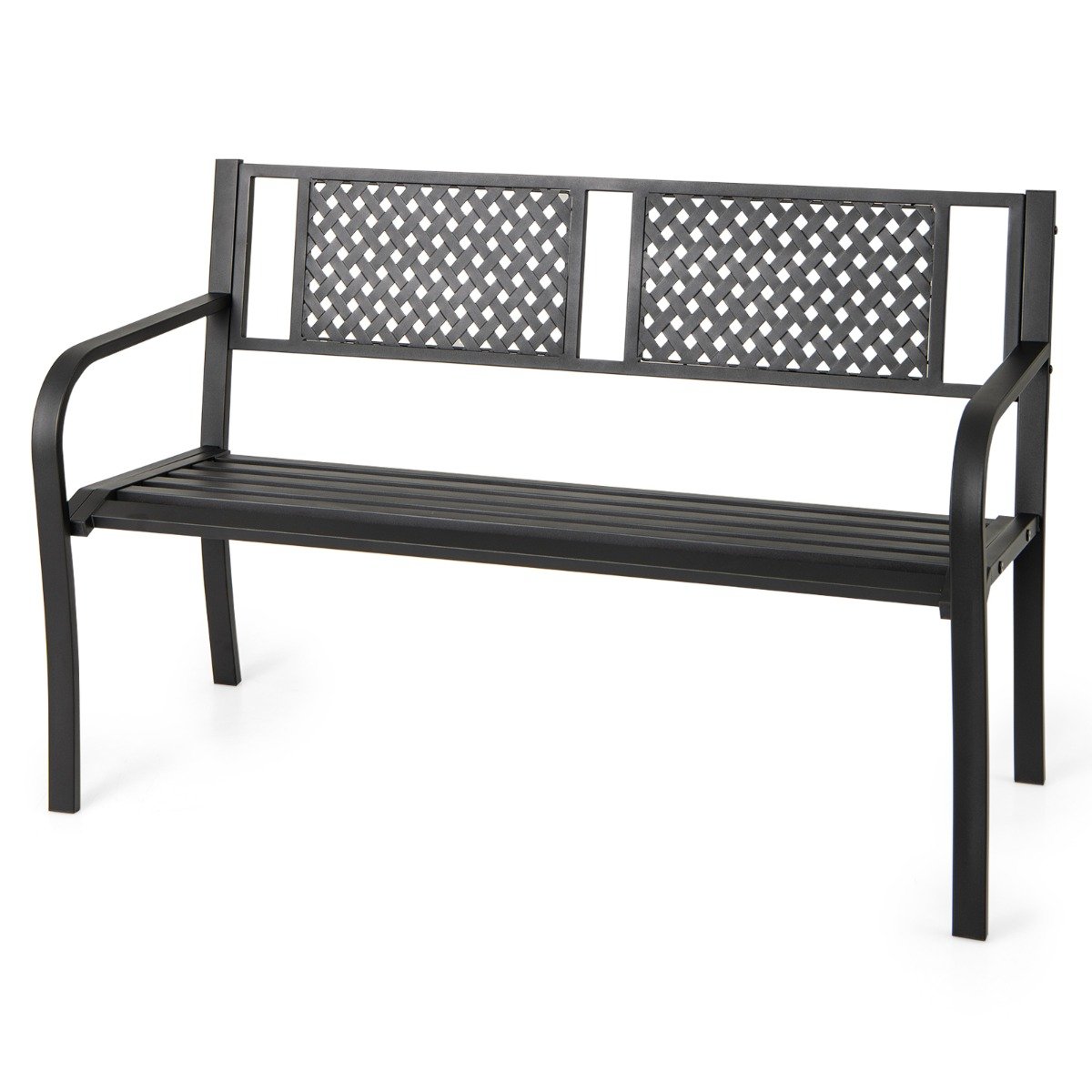 127CM Garden Bench with Patterned Backrest and Curved Armrests-Black