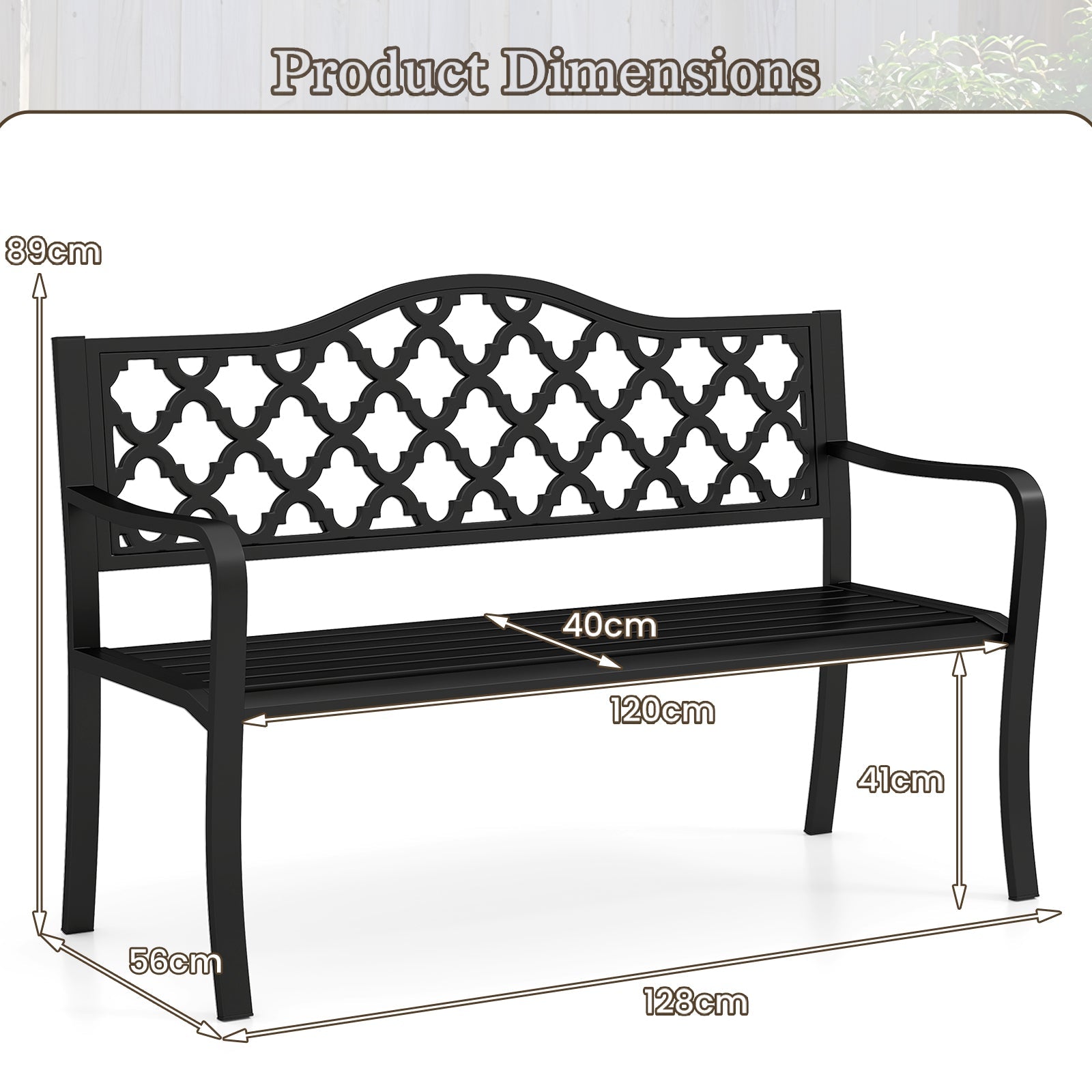 128CM Patio Bench Slatted Metal Garden Bench for 2-3 People-Black