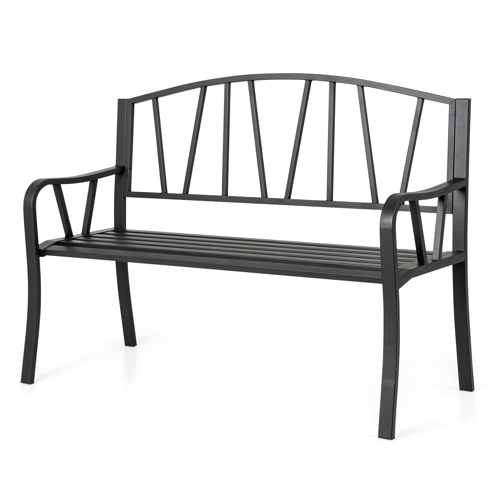 129CM Metal Garden Bench Patio Slatted Bench for 2-3 People-Black