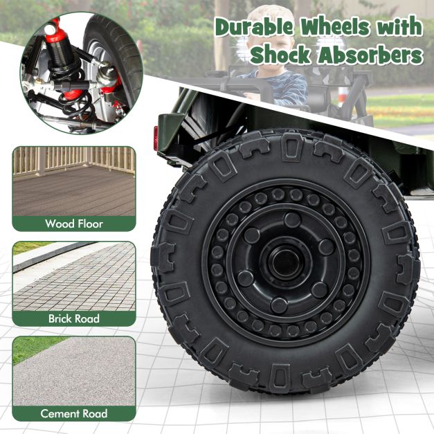With the steering wheel, operation lever and foot pedal, kids can move it forward or backward, turn it left or right and brake as they like. It also allows kids to freely choose high speed or low speed. 4 large wheels bring kids unforgettable driving experience. The rear wheels with shock suspension add more security. Besides, there is a remote control for parents to remotely control the car to prevent the child from crashing. To better protect kid’s safety, we also design it with safety belt and lockable doors. Furthermore, slow start function can also ensure toddlers’ driving safety. If you are looking for a ride-on car like this, do not hesitate to place an order! Officially Toyota FJ Cruiser Kids Truck:This licensed Toyota FJ cruiser ride-on toy car is designed with cool LED headlights and rear lights, built-in horn and starting sound effects. The multifunctional dashboard also has USB, story, music and wireless functions. Thus, it will offer kids a realistic and thrilling driving experience. Manual Operation andRemote Control: Flexible steering wheel, operation lever and foot pedal help kids experience fun manual control. Plus, if parents want to join kid’s adventure, they can use the remote control(requires 2 AAA batteries, not included) for speed and direction operation.R/C andpedal switch avoids accidental operation. Durable Wheels with Shock Absorbers: 4 wear-resistant wheels enable the car to move smoothly on a variety of flat surfaces, such as wood floors, cement roads, brick roads, etc. Besides, 2 rear wheels are equipped with shock absorbers to ensure steady driving. Designed with Various Safety Protection: Different from other toy cars with normal start, the 12V ride-on truck is equipped with slow start function to avoid sudden start and lockable doors to protect kid’s driving safety. Wide seat with safety belt will fix your child into the seat. And it also features over-charging and overload protection. Perfect Gift for 37-96 Months Old Kids: This 2-seater ride-on car is an ideal gift option for kids’ birthdays and other festivals. The car with attractive colors enables your little one the focus of peers. Additionally, certified by EN71, it’s safe and reliable for toddlers to use.