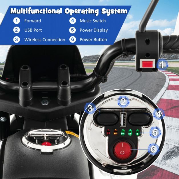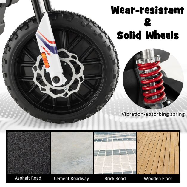 12V Battery Powered Toddler Motorbike with Music for 3-8 Years Old Kids-White
