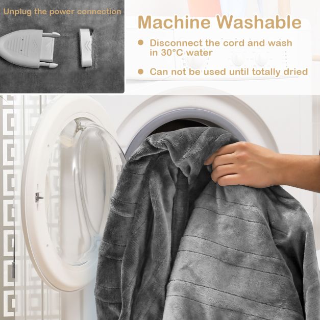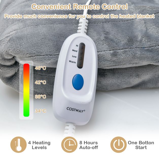 130 x 180 cm Electric Heated Blanket with 4 Heating Levels-Grey