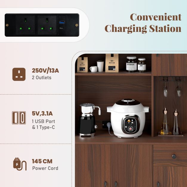 167cm Tall Pantry Cabinet with Hutch and Power Outlets-Walnut