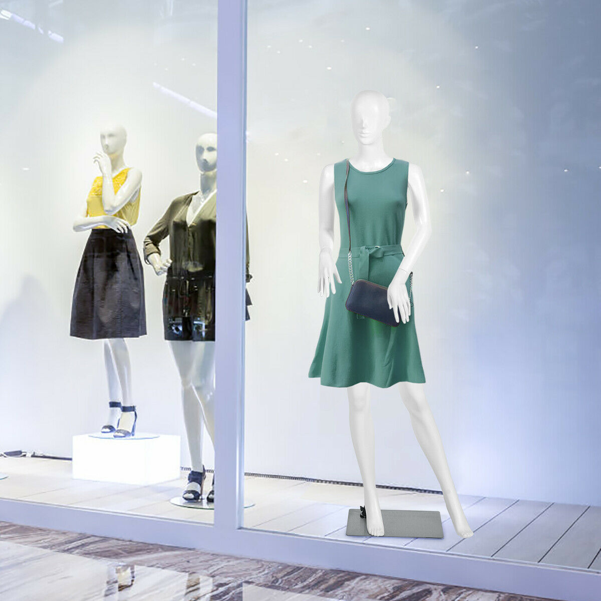 Box Qty:1(May vary by batch) Colour: White Material: PP Plastic + metal + aluminum Overall Height: 177 cm Measurement: 84 cm x 61 cm x 86 cm Base Dimension: 40 cm x 30 cm Net Weight: 7 kg Package Includes: 1 x Female Mannequin 1 x Instruction Manual