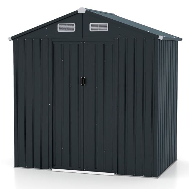 193 x 129 x 196 cm Tool Shed Garden Shed with Sloping Roof Sliding Doors Vents Grey Galvanised Metal Frame