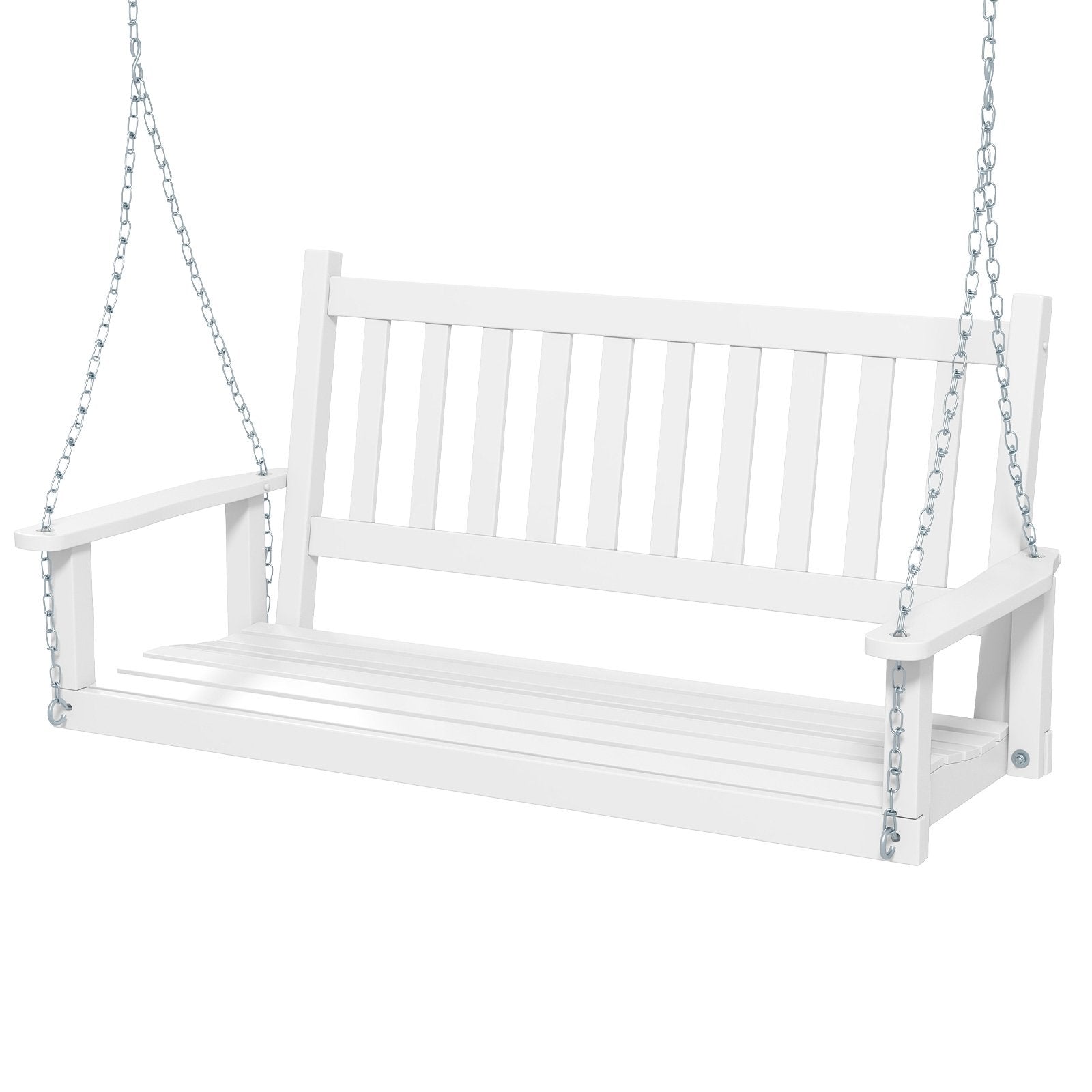 2/3 Person Wooden Outdoor Porch Swing with Adjustable Upper Chains-White-2 Person