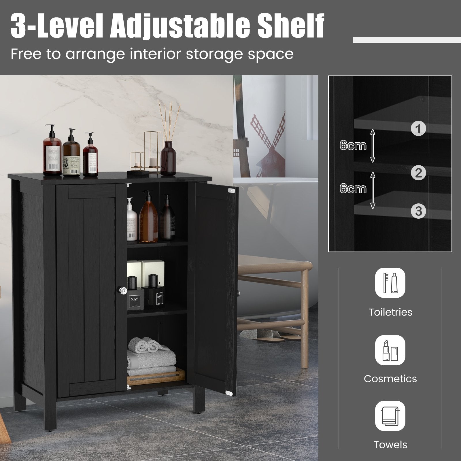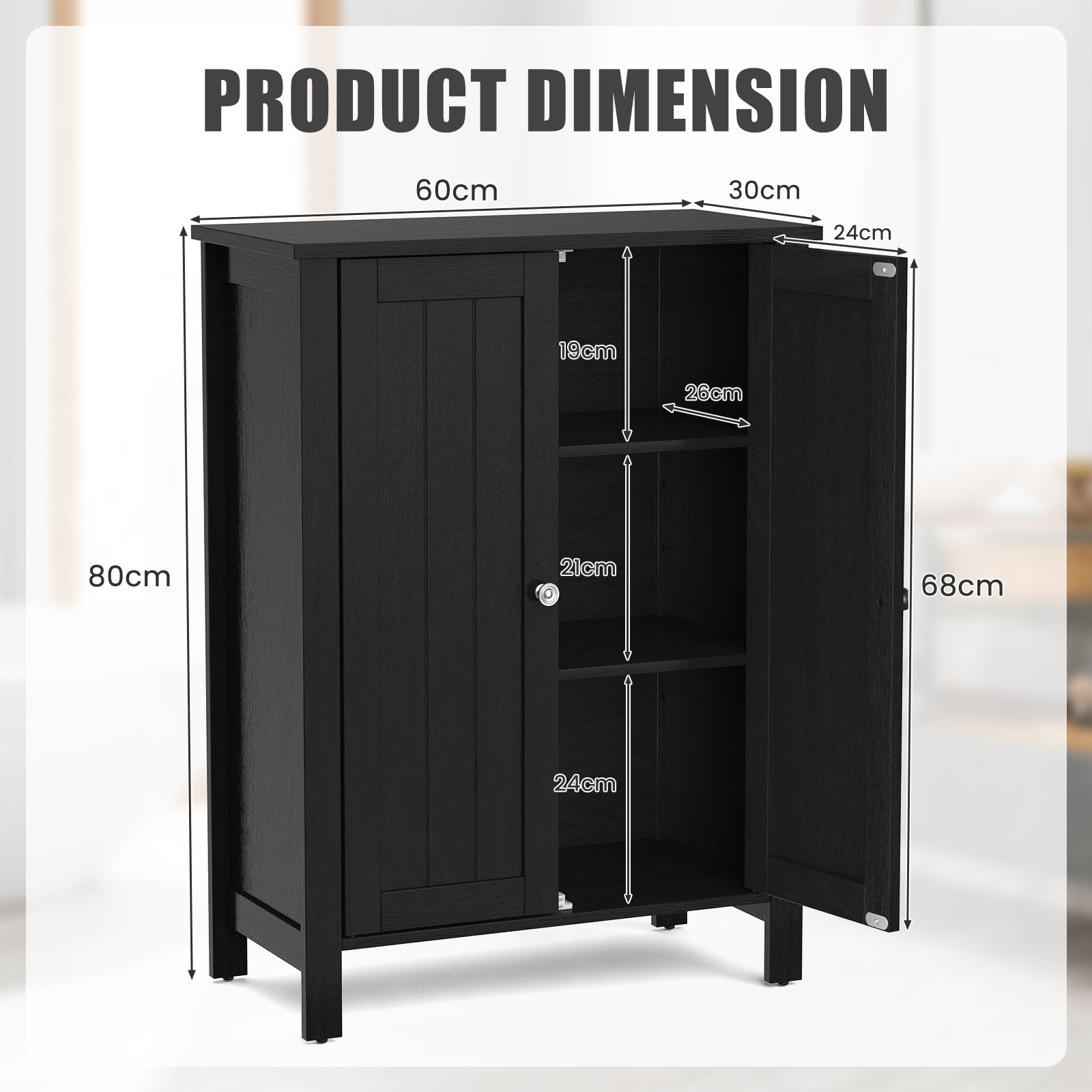 2-Door Freestanding Bathroom Floor Cabinet with Adjustable Shelves-Black