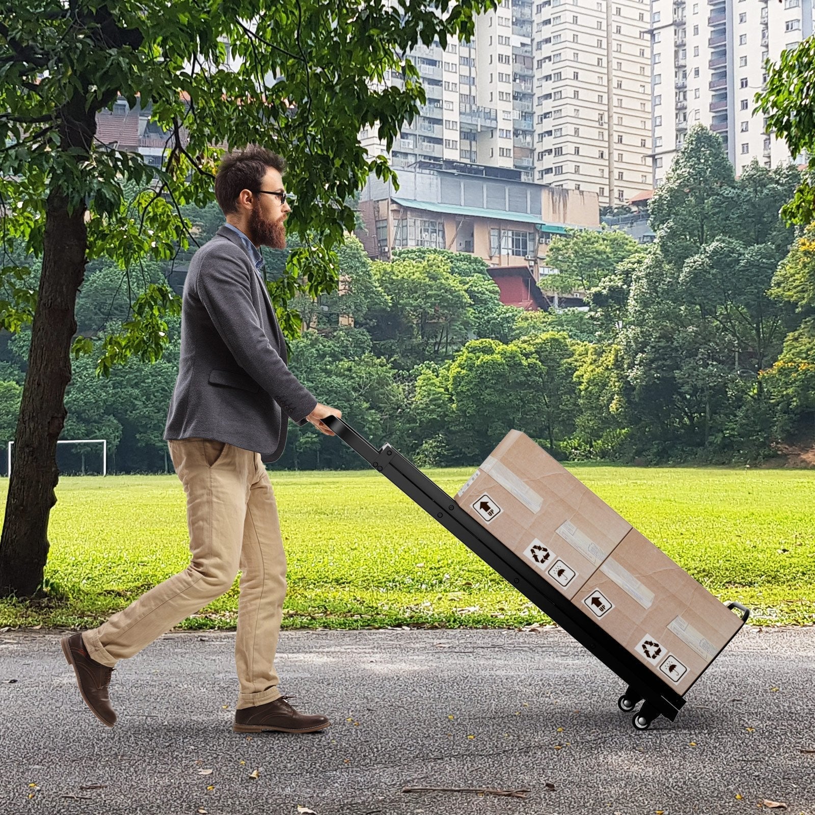 Color: Black Material: Metal, Rubber Product Dimension: 81 x 44 x 117 cm (L x W x H) Dimension of Hand Truck: 40 x 44 x 123 cm (L x W x H) Folding Dimension: 123 x 44 x 7 cm (L x W x H) Dimension of Each Pedal: 35 x 26 cm (L x W) Weight Capacity of Ladder: 200 kg Weight Capacity of Hand Truck: 250 kg Net Weight: 11 kg Box Qty:1(May vary by batch)Package Includes: 1 x Ladder Hand Truck 1 x Instruction