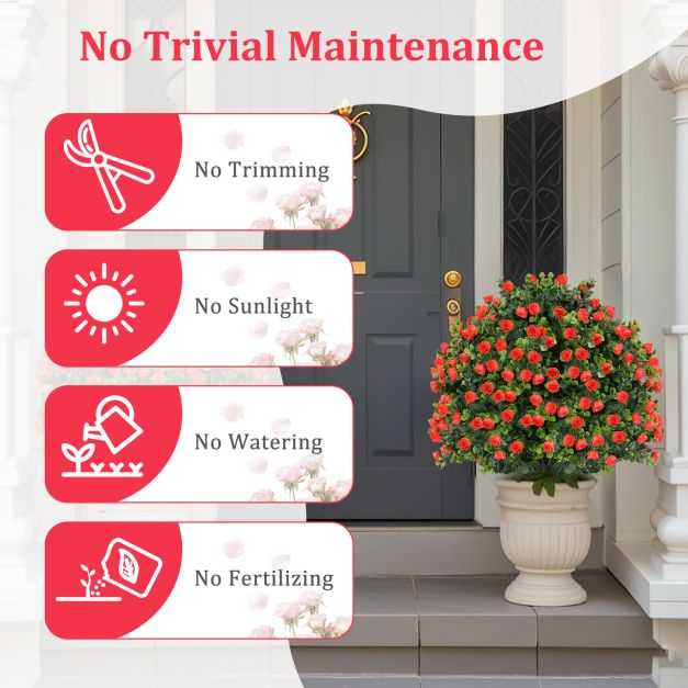 2 Pack Artificial Rose Topiary Ball Tree with Flowers and Plastic Nursery Pot-Rose