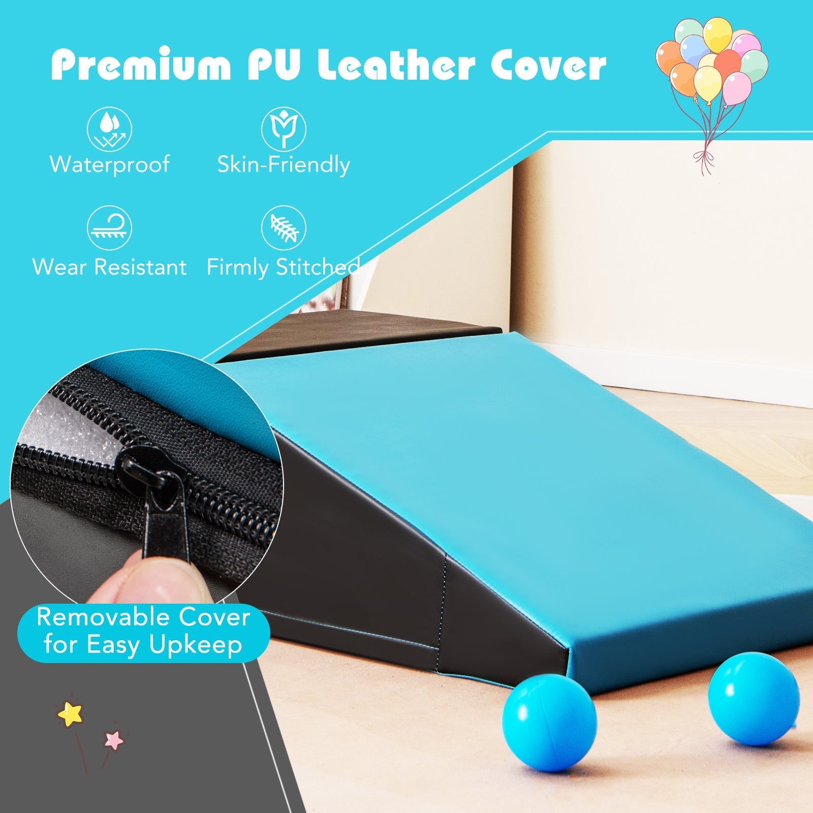 Made with high-density EPE foam filling, this soft play set offers a cushioned and secure surface for play. The step and slide climbers not only promote physical activity but also enhance gross motor skills and sensory development, aiding in balance, coordination, and strength. The PU leather cover is easy to clean and maintain for your child's playtime. The hook and loop fasteners create a strong connection between the foam blocks, allowing for various play configurations such as climbing, sliding, and crawling. Safety First: This 2-piece soft play set provides a secure play environment for infants and toddlers with its high-density EPE foam filling, offering a gentle and cushioned surface for exploration and play. Develop Through Play: The step and slide climbers promote physical activity, gross motor skills, and sensory development as little ones climb or crawl on them, enhancing balance, hand-eye coordination, and strength building. Easy to Clean: The premium PU leather cover is waterproof, skin-friendly, wear resistant and firmly stitched. The removable zippered cover ensures hassle-free maintenance to keep playtime clean for your child. Versatile Play Options: The hook and loop fasteners provide convenient and strong connection between 2 foam blocks. So, the step and slide design offers multiple play configurations, allowing children to climb, slide, crawl, fostering creativity and imagination. Product Specifications: The assembled step and slide measures 100 x 50 x 25 cm (L x W x H). Designed for convenience, this soft foam climber set is lightweight and portable, making it easy to move from room to room for playtime anywhere.