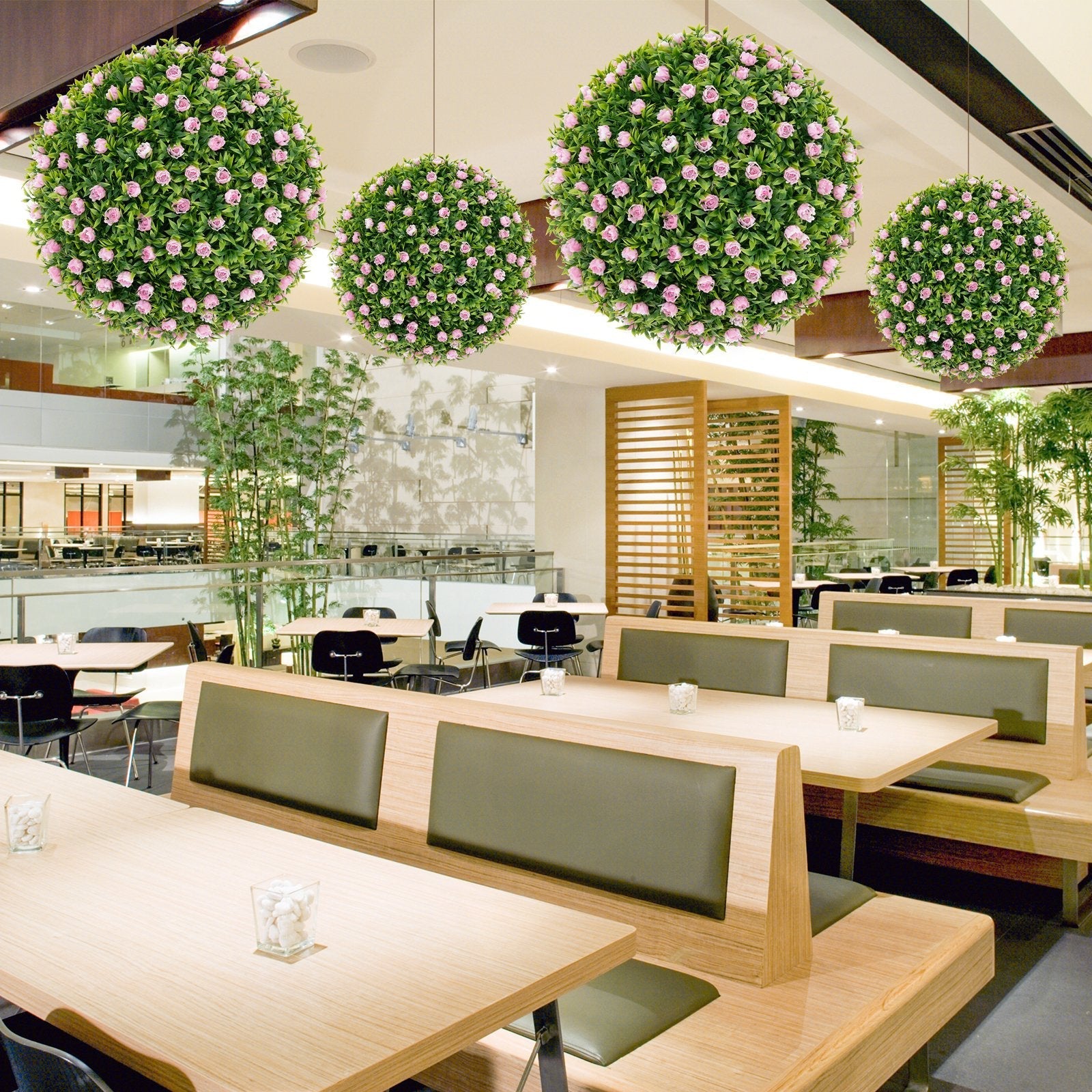 The faux decorative balls come with lush gradient green leaves, creating a more attractive and vivid appearance. Unlike others without flowers, these features lovely pink flowers, which are sure to add a pop of color that instantly brightens up the room. Made from sun-proof, and odor-free PE material, this faux green ball plant is designed to withstand both indoor and outdoor environments. Most importantly, the faux garden sphere requires no maintenance while still bringing all year round vitality. You can hang them to create a whimsical look or place them on the floor for a grounded touch. In addition, you can put it in a round and square flower pot. Therefore, this 2 pack boxwood balls can be widely used for home, office, wedding or lawn. Moreover, the easy assembly will free your hands. Realistic and Exquisite Appearance: Each faux plant ball boasts intricately designed gradient green leaves, creating a dense and vivid visual impact. Moreover, the leaves are adorned with pink roses. These delightful blooms bring a burst of color that instantly uplifts the ambiance of any space. Premium PE Material: The artificial topiary balls are made of sun-proof PE material, which is not easy to fade for prolonged outdoor use. Moreover, the selected material will not emit unpleasant smell, allowing for indoor use without worries. No Maintenance Required: Unlike real plants that will be affected by climate, these artificial boxwood balls will keep vibrancy for years. Additionally, no watering, pruning, or sunlight exposure required to maintain their vivid appearance. Endless Display Options: The hanging faux plant balls can be hung on the roof to enhance the ambience of your home, coffee shop, exhibit hall. Or you can place them in a rustic planter to reflect your style. Moreover, the faux decorative balls can be put on the floor for wedding or outdoor parties. Quick Assembly and Warm Tip: Each artificial plant ball comprises 2 easy-to-assemble semicircles connected by 8 clips. If the item is slightly deformed due to transportation, please sort out the leaves to restore the shape.