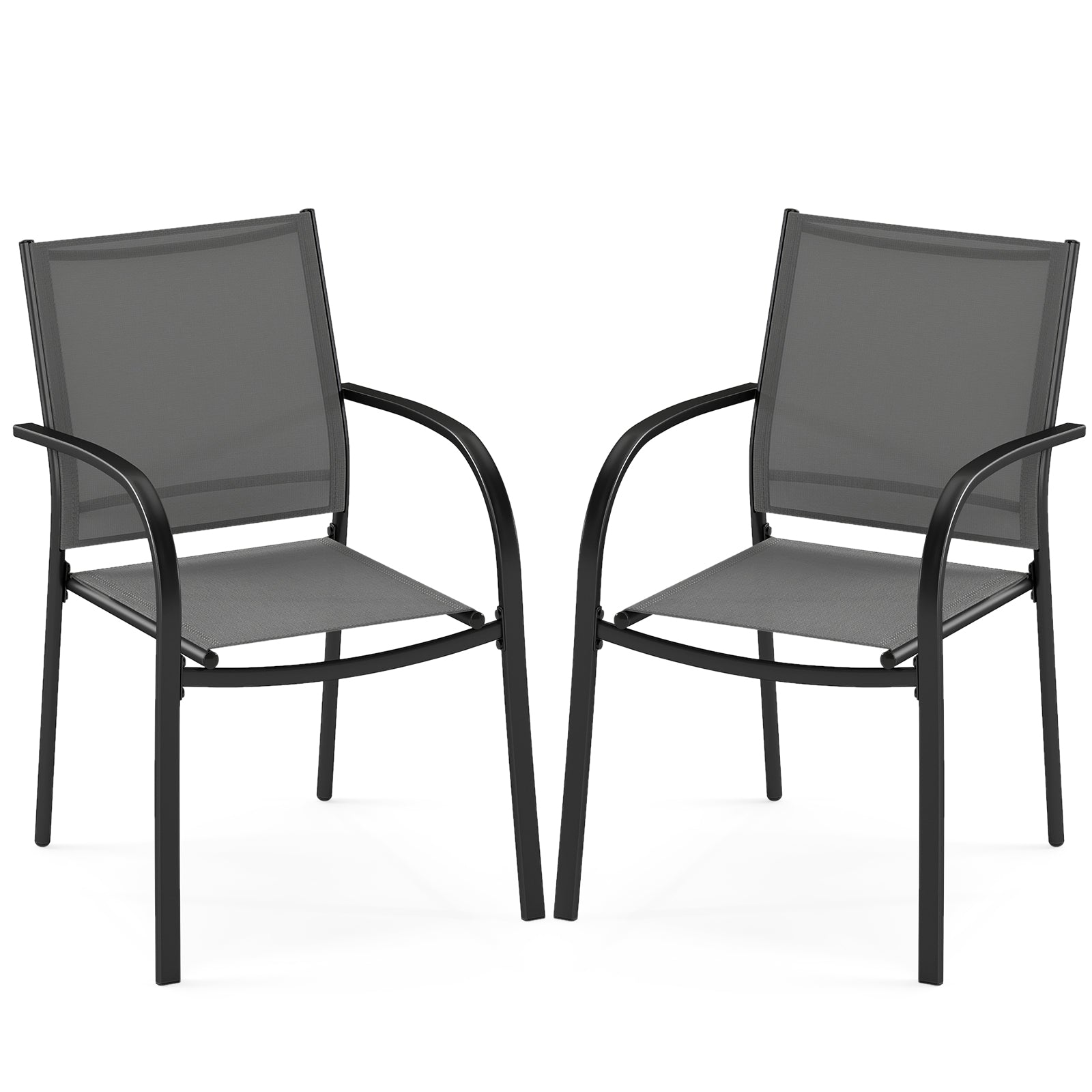 2 Pieces Outdoor Dining Chairs with Armrests and Breathable Fabric-Grey