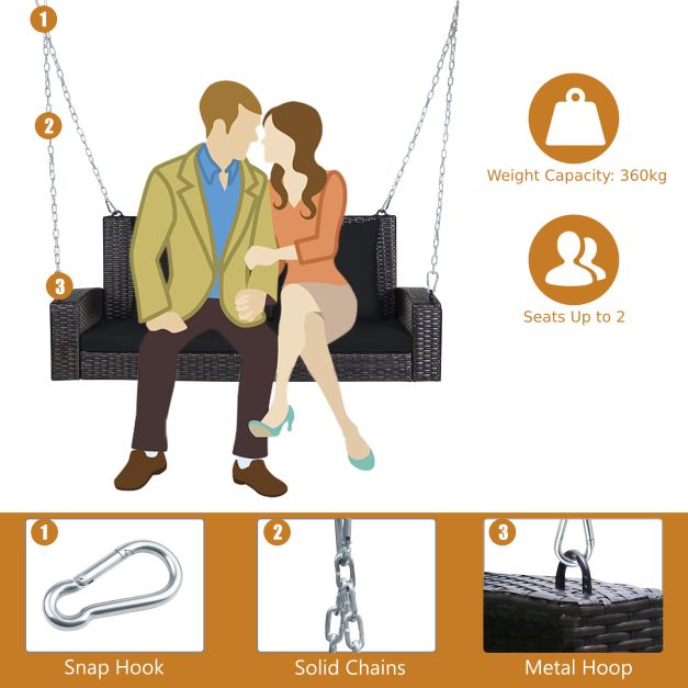 2-Seat Patio Rattan Porch Swing with Two Solid Steel Chains-Black