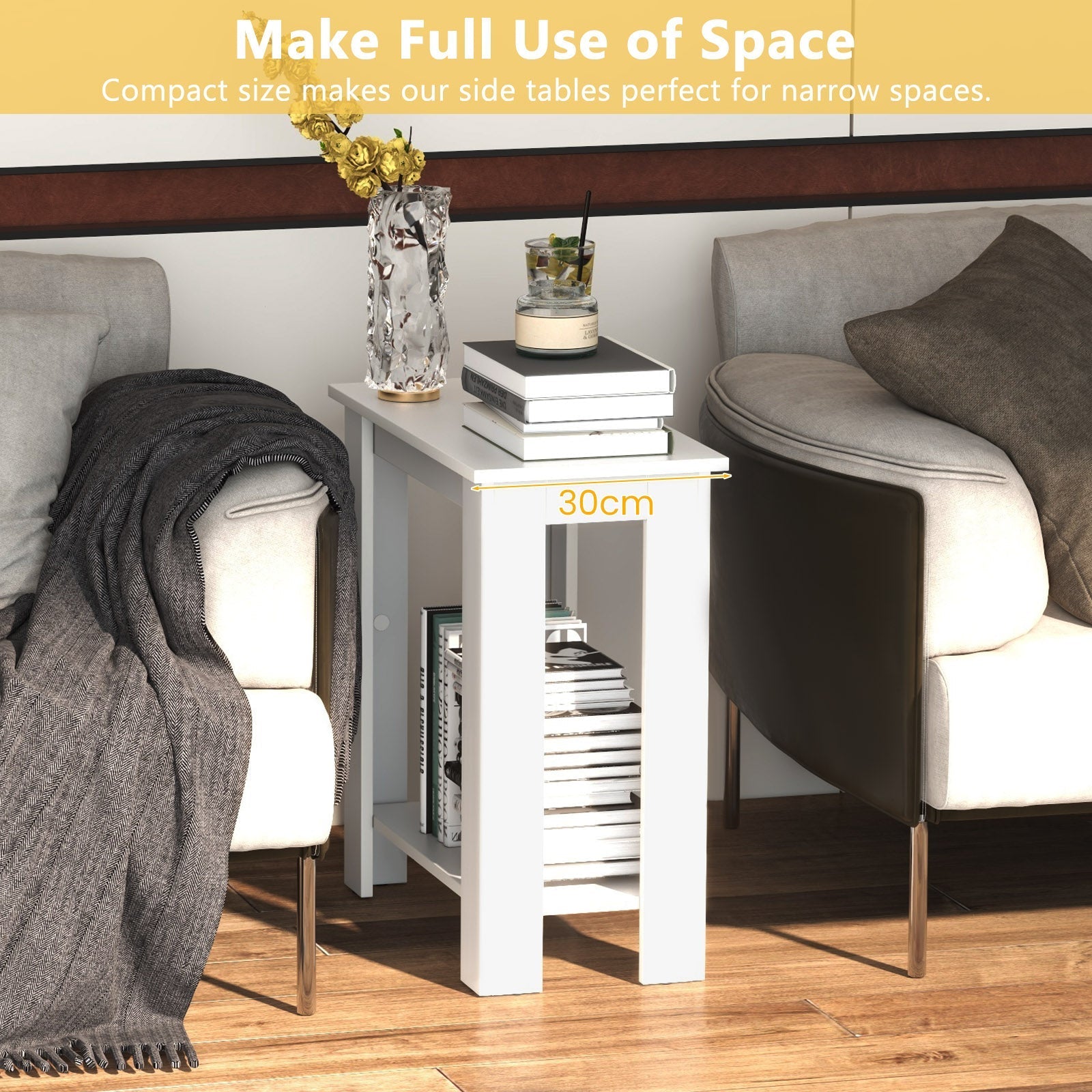 2-Tier End Table with Storage Shelf for Small Spaces-White