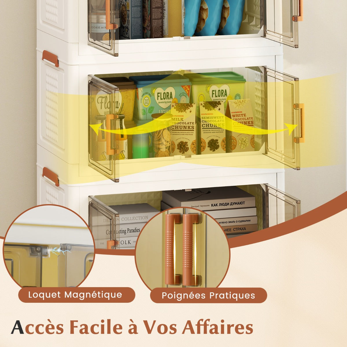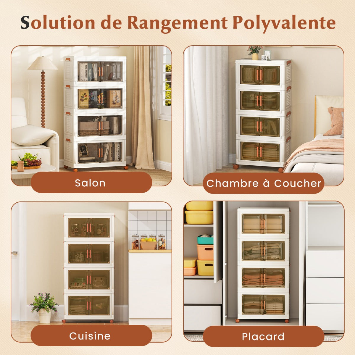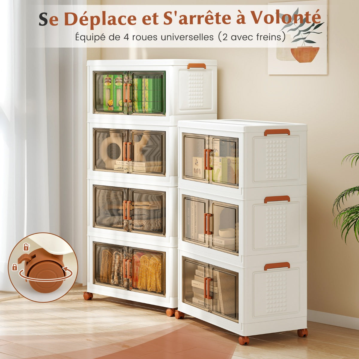 280L Foldable Storage Bins with Lids Set of 4 Stackable Plastic Storage Boxes with Wheels White Storage Containers