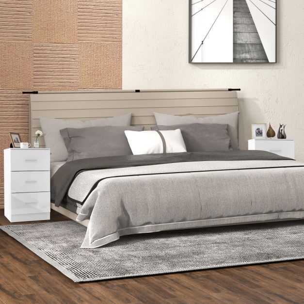 3 Drawer Bedside Table High Gloss 37.1 x 34.2 x 66.5 cm White