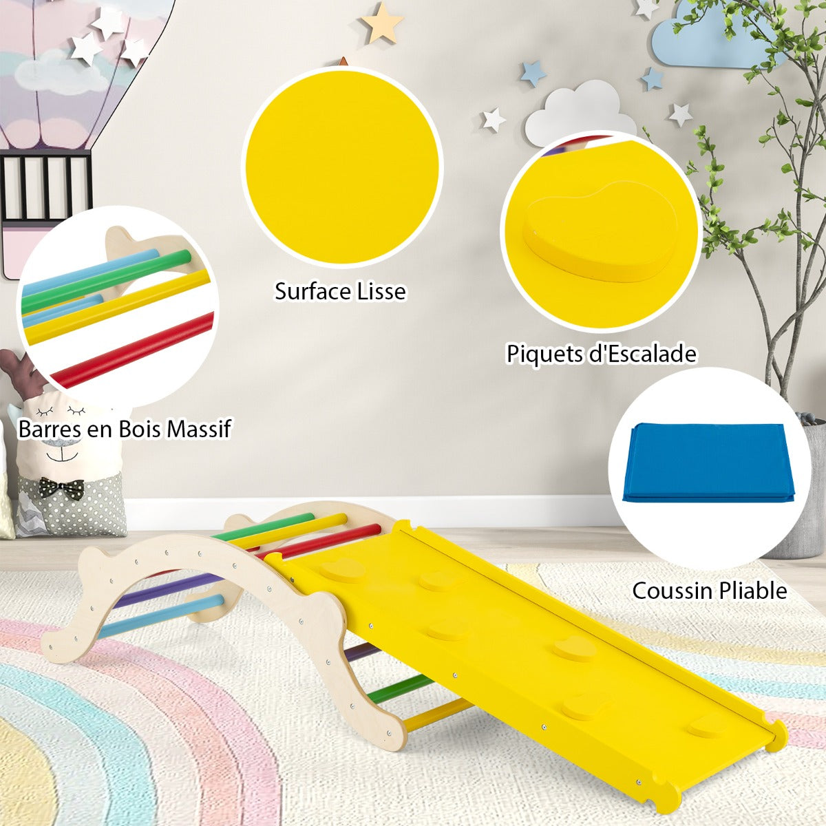 3-In-1 Wooden Climber with Ramp Toddler Climber Arch-Multicolor