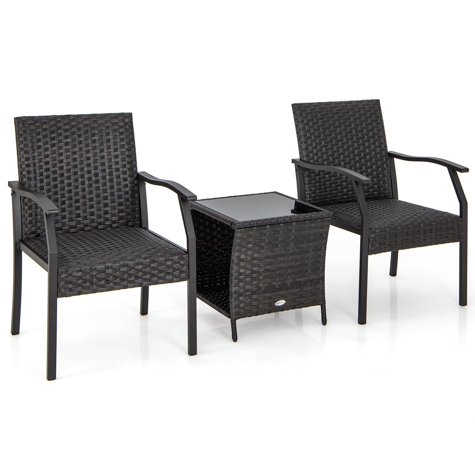 3 Piece Patio Wicker Chair Set with Cushioned Seat