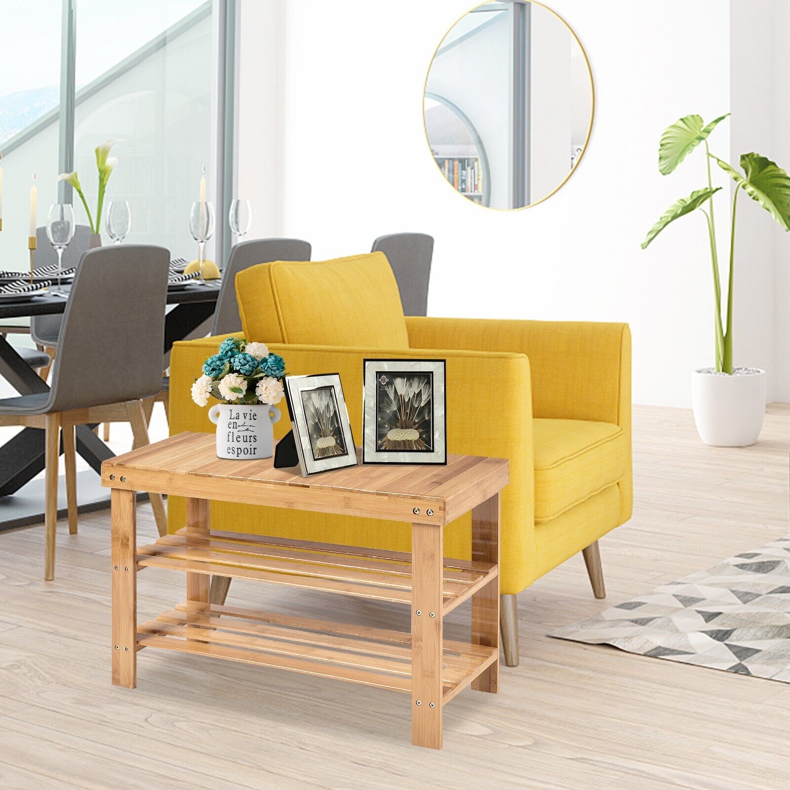 3-Tier Bamboo Shoe Bench for Entryway-Natural