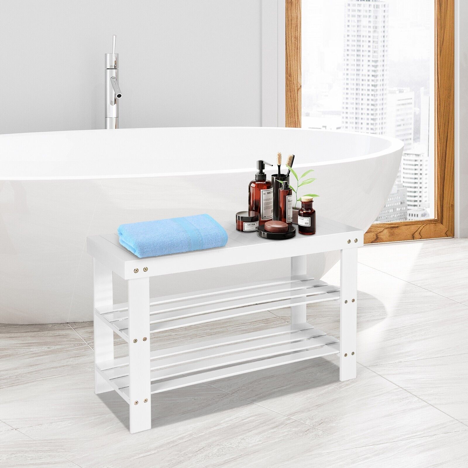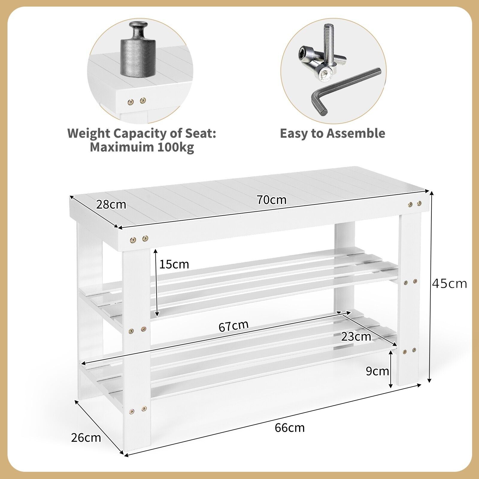 3-Tier Bamboo Shoe Bench for Entryway-White