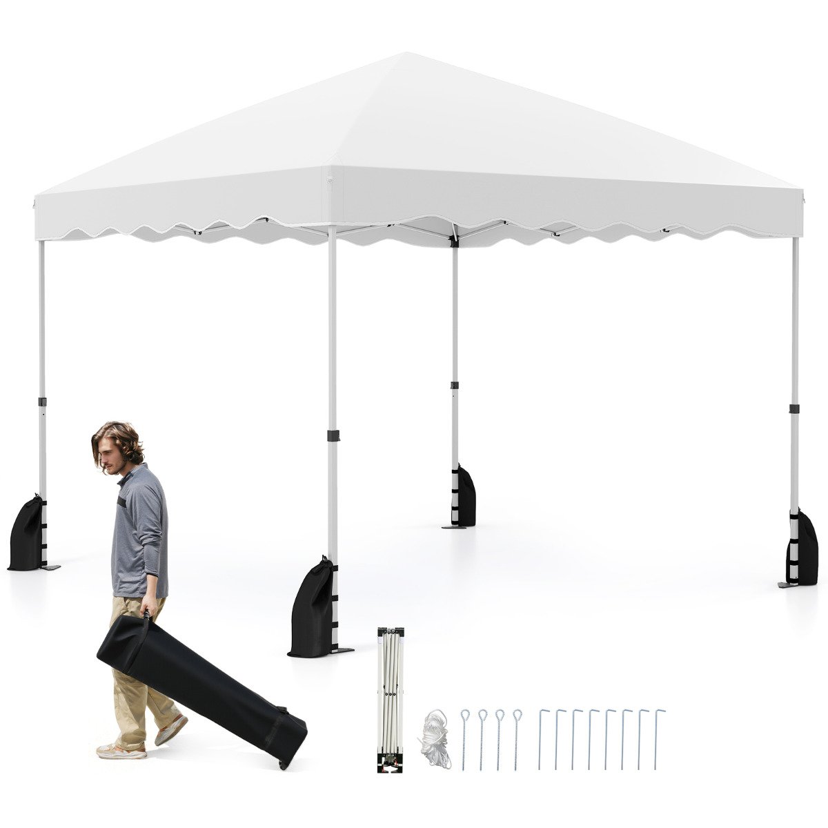 300 x 300 cm Pop up Canopy Tent with Wheeled Bag-White