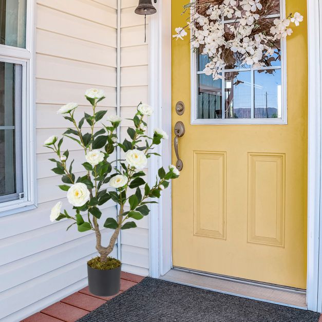 36 Inch Artificial Camellia Tree with Blooming Flower 1 Pack-White