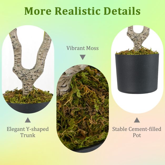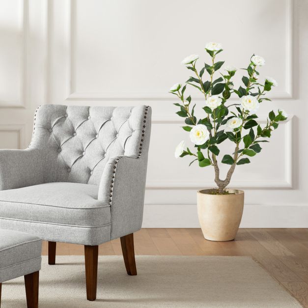-Perfectly mimics the enchanting beauty of a real camellia tree-The realistic moss adds authenticity to the whole look-The PE trunks with simulated bark add a touch of natural charm and texture-The plastic flowers and leaves are reliable and crack-resistant, built to last-Features a stable flowerpot with built-in cement, prevent wobbling or tipping over-Free maintenance, not be affected by seasons, keep vitality all the time-Ideal for decorating your home, office, wedding, front door porch, balcony, etc-No need to assemble, please rearrange leaves and flowers after unpacking for a fuller shape