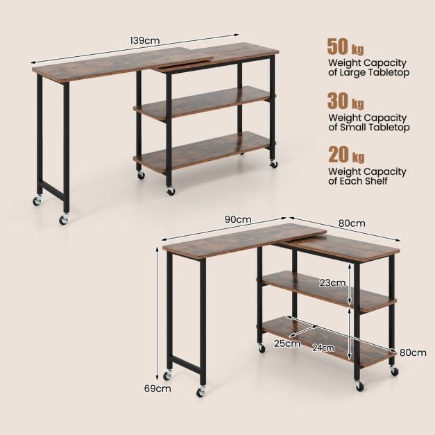 360° Free Rotating Sofa Side Table with Swivel and Sliding Tabletop-Rustic Brown