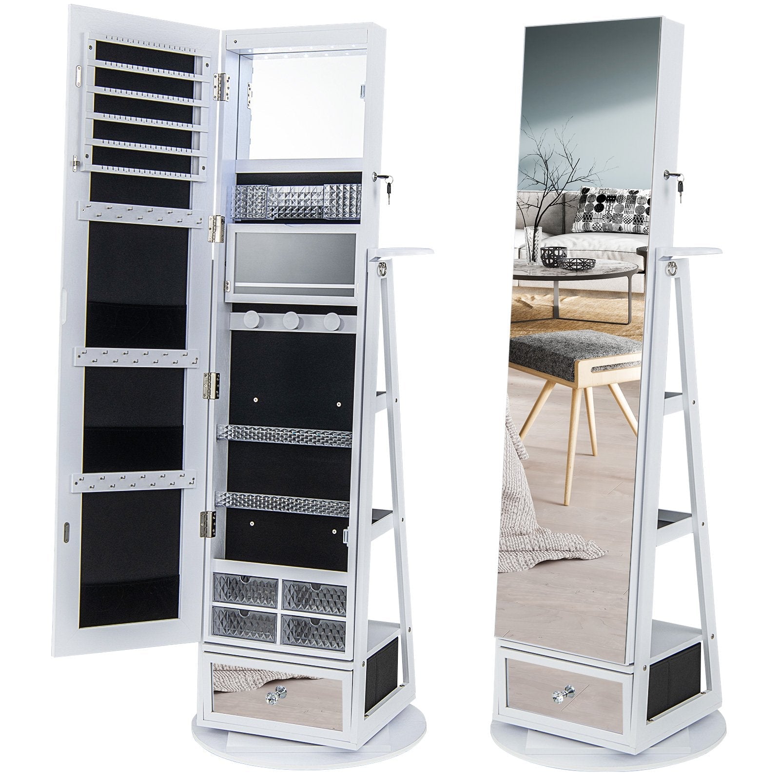 360° Swivel Lockable Jewelry Armoire Cabinet with Full-Length Mirror-White