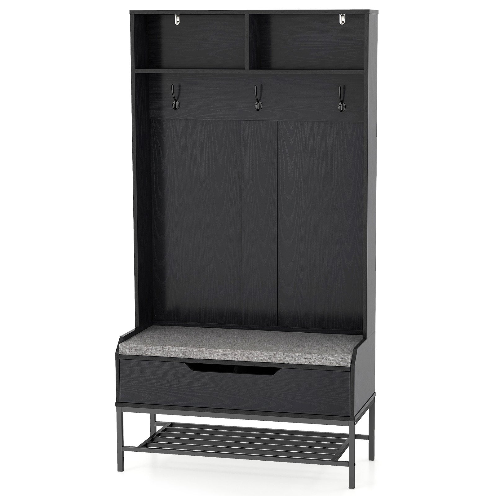 4-in-1 Coat Rack with Seat Cushion and Open Compartments-Black