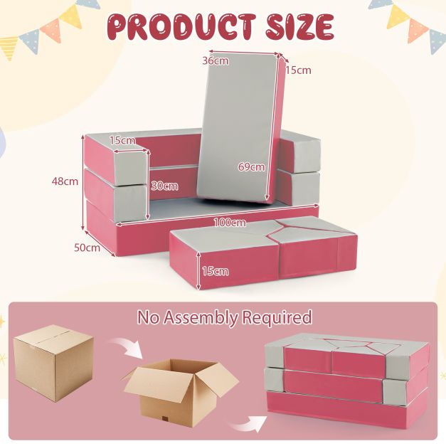 It serves as a kid’s sofa, comfy bed, table and chair set, and building blocks. The foam couch playset comes with 8 pieces, weighing a total of 6.5kg. Kids can independently build different shapes and structures for hours of imaginative fun. To ensure that kid’s can sit comfortably, the foam block set features skin-friendly PU leather coveringand high density EPE foam filling. Moreover, it doesn’t have any sharp edges or a rigid structure for safer use. It is also BS EN71approved, making it a safe and fun option for kids. 4 Different EntertainmentOptions: The8 piece kids play couch set can be used as a child-friendly sofa, fully flat bed, or table and chair setfor reading, sleeping, drawing, or playing. Your little one can also combine thebuilding blocksinto different shapes for hours of fun. Spacious and Cozy Seating Area:Measuring100 x 50 x 46 cm (L x W x H), the combination sofa set provides your child with a large sitting area. The raised backrest, side armrests,and wide seat are the perfect size for your little one to feel comfortable sitting in. Moreover, the 15 cm thick EPE foam filling offers comfortable support. Easy-to-cleanPU Leather Cover: Covered with high-quality PU leather, the kids couch sofa is skin-friendly, wear-resistant, andlong lasting. Additionally, the stain-resistant PU leather cover can also be easily removed using the smooth zippers for easy cleaning, saving you time and energy. OffersMultiple Safety Protection: The smooth edges and non-rigid structure help to avoid accidental bumps or scratches to create a safe sitting and playing area for your kids. The kids play couch set also complies with BS EN71standard for greater safety and reliability. Ideal Gift for Kids 3+ Years Old: Theconvertible foam couch playset allows kids to joyfully sit, climb, play, or explore, which can benefit their motor skills and hand-eye coordination. Not only that, but it also promotes kid’s imagination and creativity when they build using the foam blocks.
