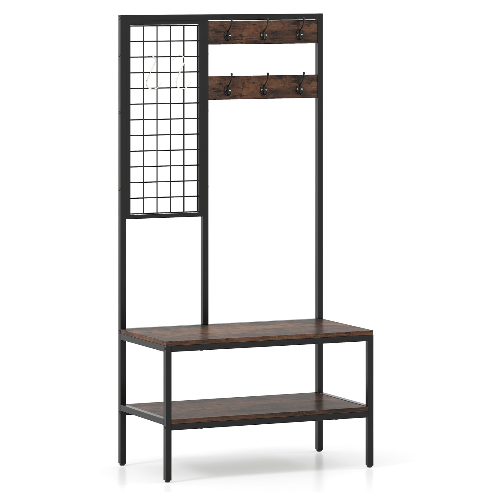 4 in 1 Hall Tree with Shoe Bench and 8 Hanging Hooks for Entryway