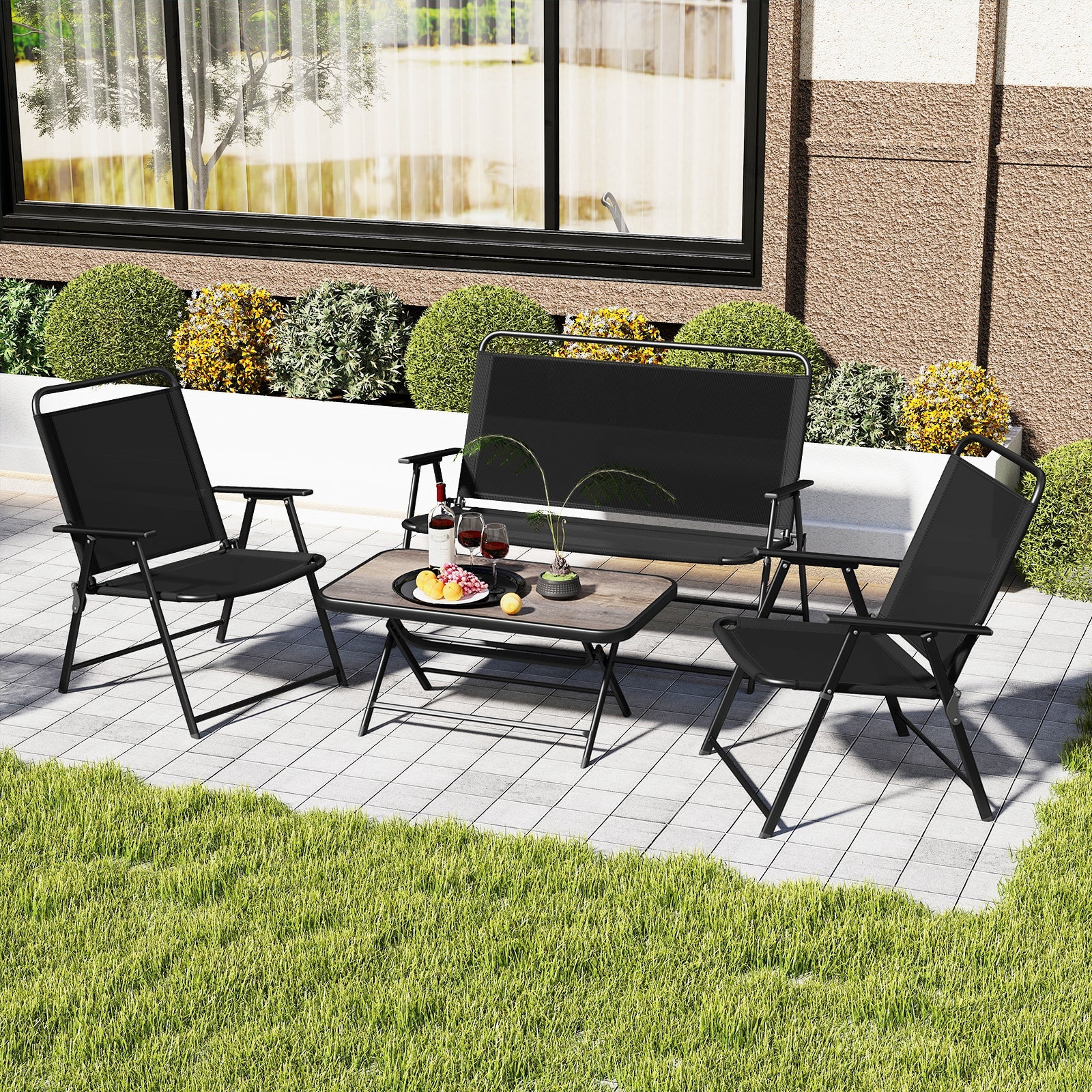 4 Piece Outdoor Conversation Set with 2 Chairs and Loveseat-Black