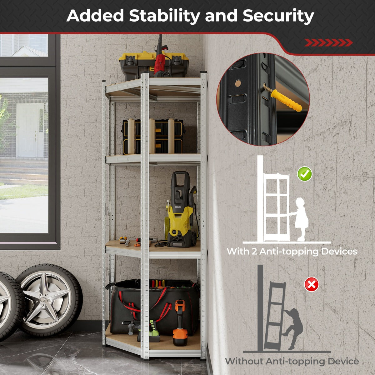 4-Tier Corner Shelving Unit 720KG Heavy Duty for Warehouse Pantry Shed and Kitchen-Silver