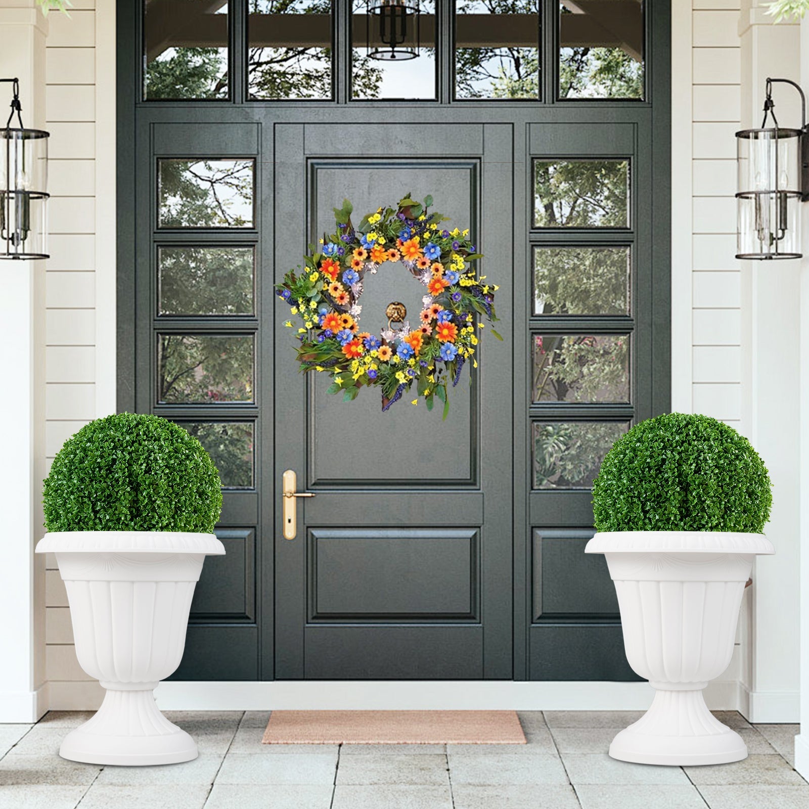Crafted from high-quality PP material, these planters is easy-to-maintain and capable of withstanding various weather conditions, making them suitable for both indoor and outdoor spaces. Each planter features an antique urn shape and retro pattern, infusing any space with a touch of ageless charm, such as front porches, entryways, offices, parties. Also, the 1 step easy assembly will save your time. Practicality extends to the customizable drainage system, with a pre-marked hole ready for drilling. Whether you need a vibrant floral display, succulent garden, or festive decoration, these versatile planters adapt seamlessly to meet your styling needs. Reliable and Weather-proof Material: Crafted from selected PP material, the set of 2 urn planters boasts a robust construction and easy maintenance that ensures longevity. The material’s resistance to weather elements makes these planters ideal for both outdoor and indoor use. Vintage Appearance: Featuring antique pattern and classic urn base, the decorative plant container exudes timeless elegance to enhance the visual appeal of any space. Each flower pot measures 41 x 46 cm (Dia. x H). Simple Assembly: Thanks to a simple structure that requires no additional tools, users can simply align and secure the 2 parts of the planters by rotating them into place. The easy installation allows you to enjoy the new planters immediately after unboxing. Alternative Drainage System: Each flowerpot in this set features a pre-marked drill hole that can be drilled according to your needs, providing you the option to create a drainage system that prevents overwatering and promotes plant health. Wide Application: The 2 pack decorative tall vases can be utilized to embellish your home, office, garden or wedding ceremonies. Whether you're looking to showcase vibrant floral arrangements, grow succulents, or display festive decorations, these planters adapt to your needs.