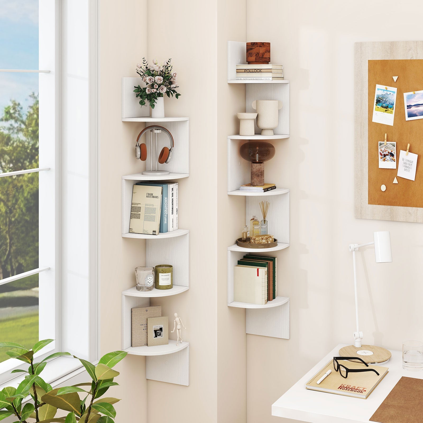 5-Tier Corner Shelf Wall Mount Floating Corner Bookshelf Corner Ladder Shelf-White