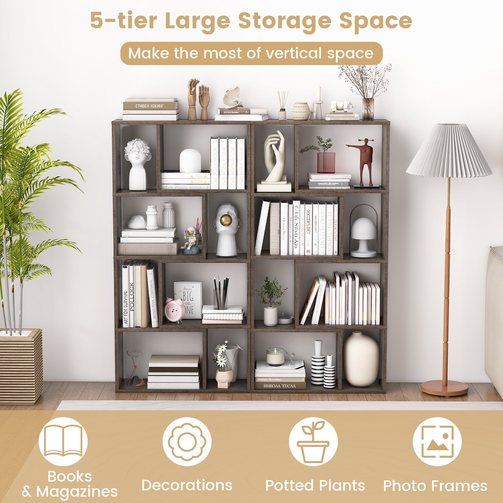 5-Tier Geometric Bookshelf with 8 Cubes Floor Standing Open Display-Grey