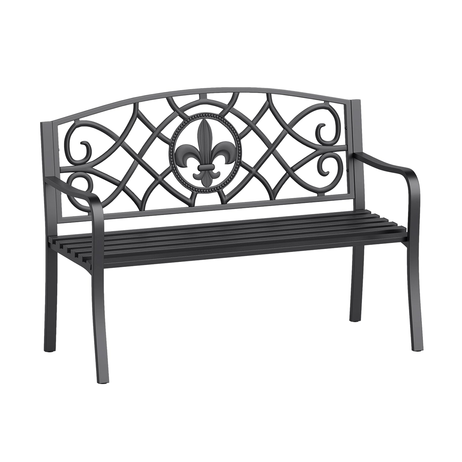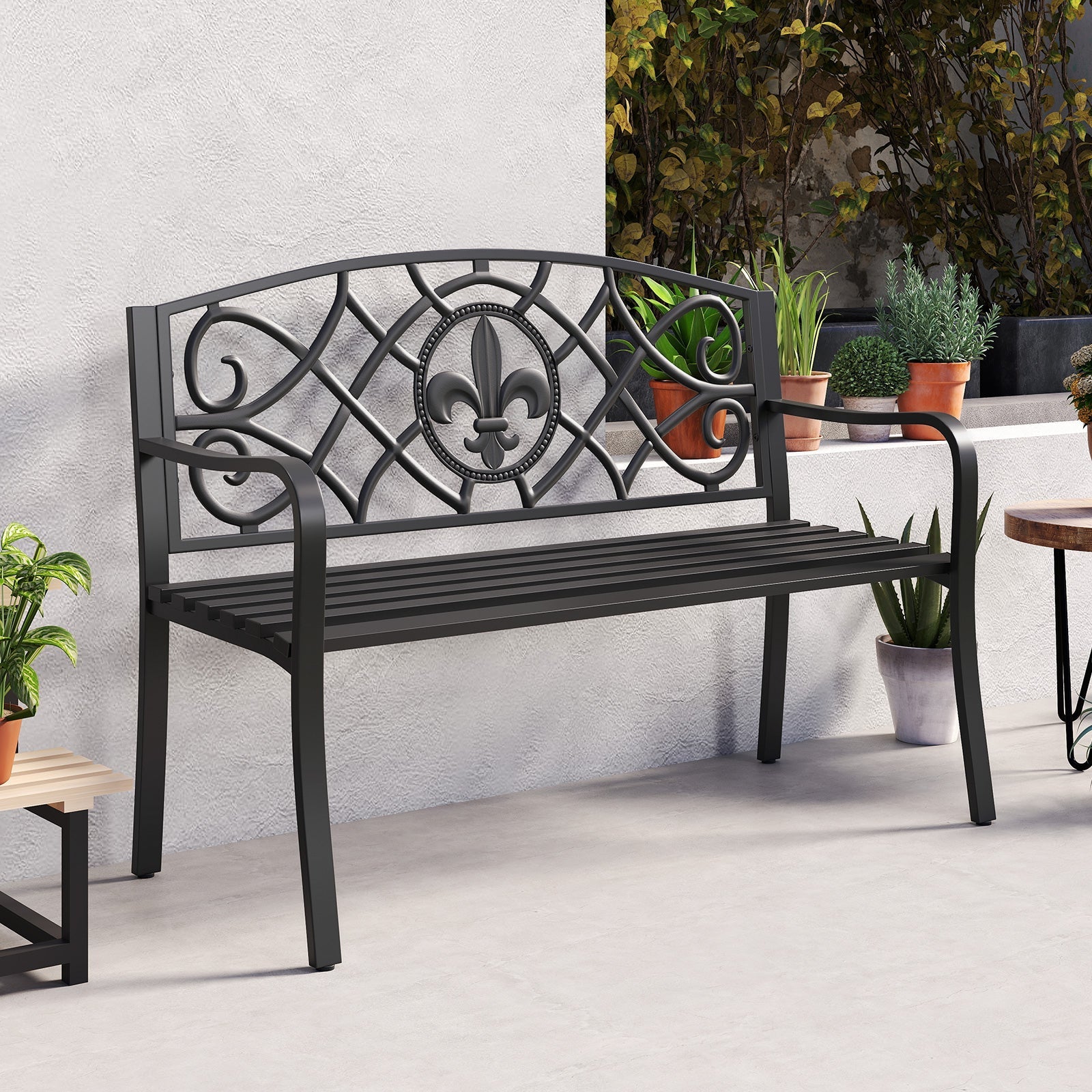 50.5 Inch Outdoor Garden Bench for 2-3 with Cast Iron Floral Backrest-Black