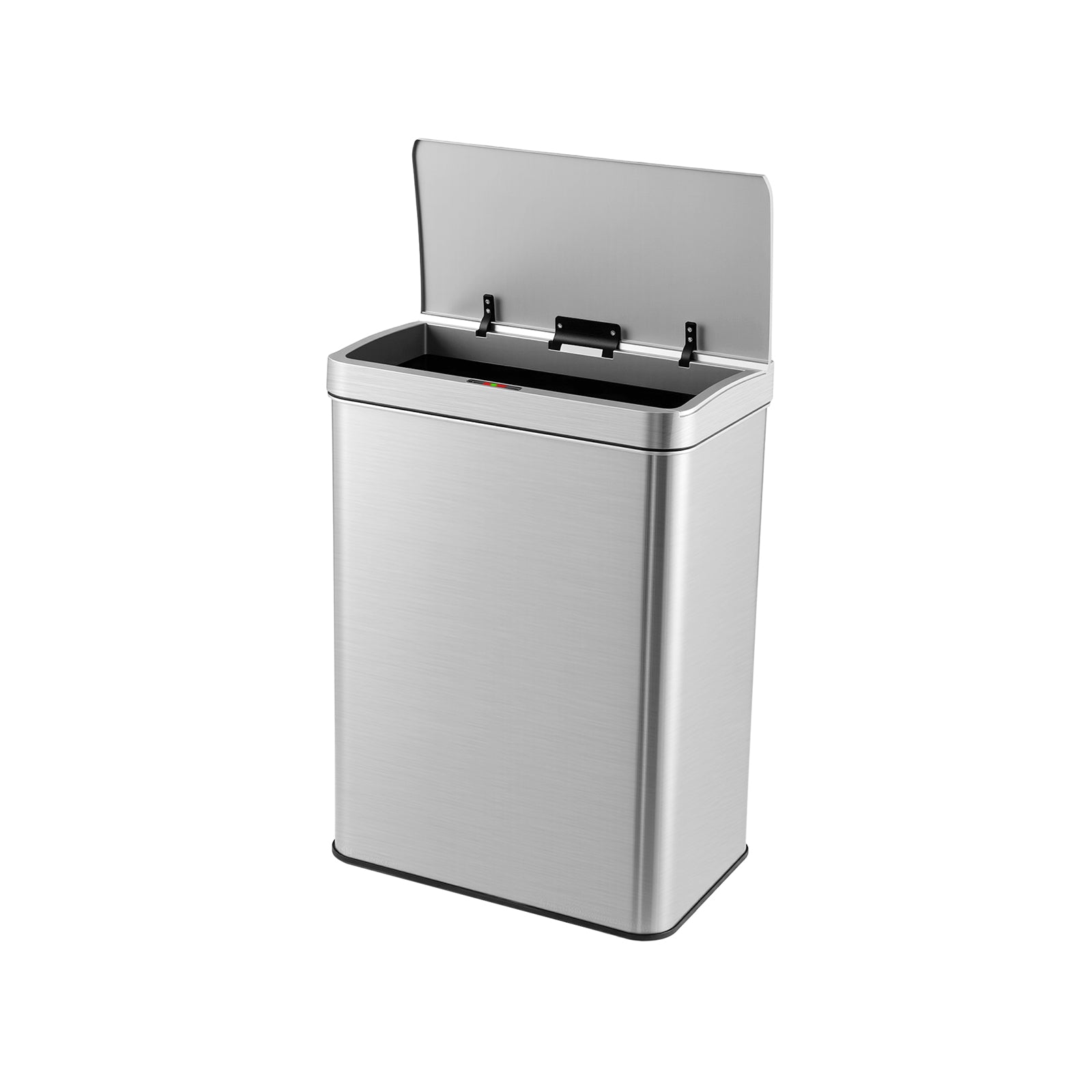 The stainless steel trash can boasts a sensitive motion sensor that achieves touchless operation within 15 cm sensing distance. Crafted from 3 layers of stainless steel, including a fingerprint-proof finish, this waste bin is not only enduring but also easy to maintain. Moreover, this trashcan offers 53L large capacity, making it perfect for bustling homes and professional kitchens. With an 85° stay-open angle for easy waste disposal and a soft close lid that prevents noise and accidents, this bin offers both functionality and style. More well-made details await your discover. Bullet Point: Advanced Motion Sensor: Eliminate the need to touch your trash can with the smart trash can featuring a sensitive motion sensor with 0.2s quick response and a 5s automatic close feature. Note: It is powered by 4 C-cell batteries (not included). 3-Layered Stainless Steel: The trashcan includes a stainless steel layer, a drawing wire layer, and an anti-fingerprint layer. This combination not only enhances longevity but also ensures the can is fingerprint resistant, waterproof, and easy to maintain. Large Capacity Convenience: Discover the great convenience of a generous 53L storage capacity, ideally suited for busy households and commercial kitchens. The motion sensor trash bin is designed to fit 70 x 75 cm (L x H) trash bags effortlessly. Stay Open and Soft Close Lid: The rectangular waste bin offers an 85° stay-open angle for easier trash disposal, while ensuring the lid never impacts the wall behind it. Plus, the soft closing design produces low noise and prevents pinched fingers. Versatile and Modern Design: The garbage can is perfect for kitchens, dining rooms, living rooms, bathrooms, offices, etc. Additionally, it features a simple modern design that complements different decorations.