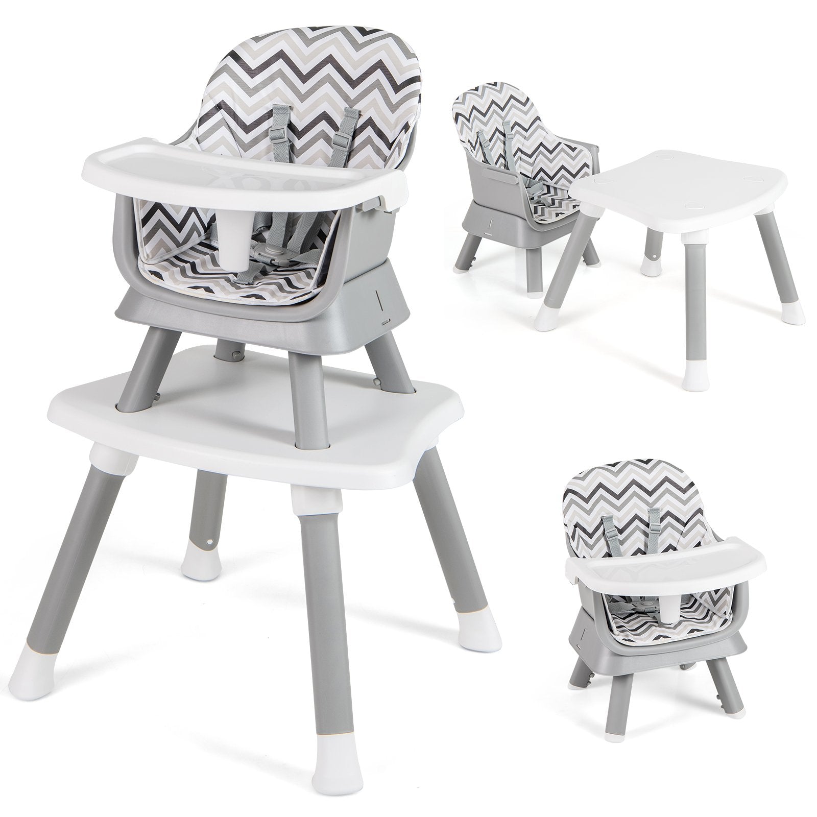 6-in-1 Baby High Chair with 5-Point Harness and Removable Tray-Gray & White