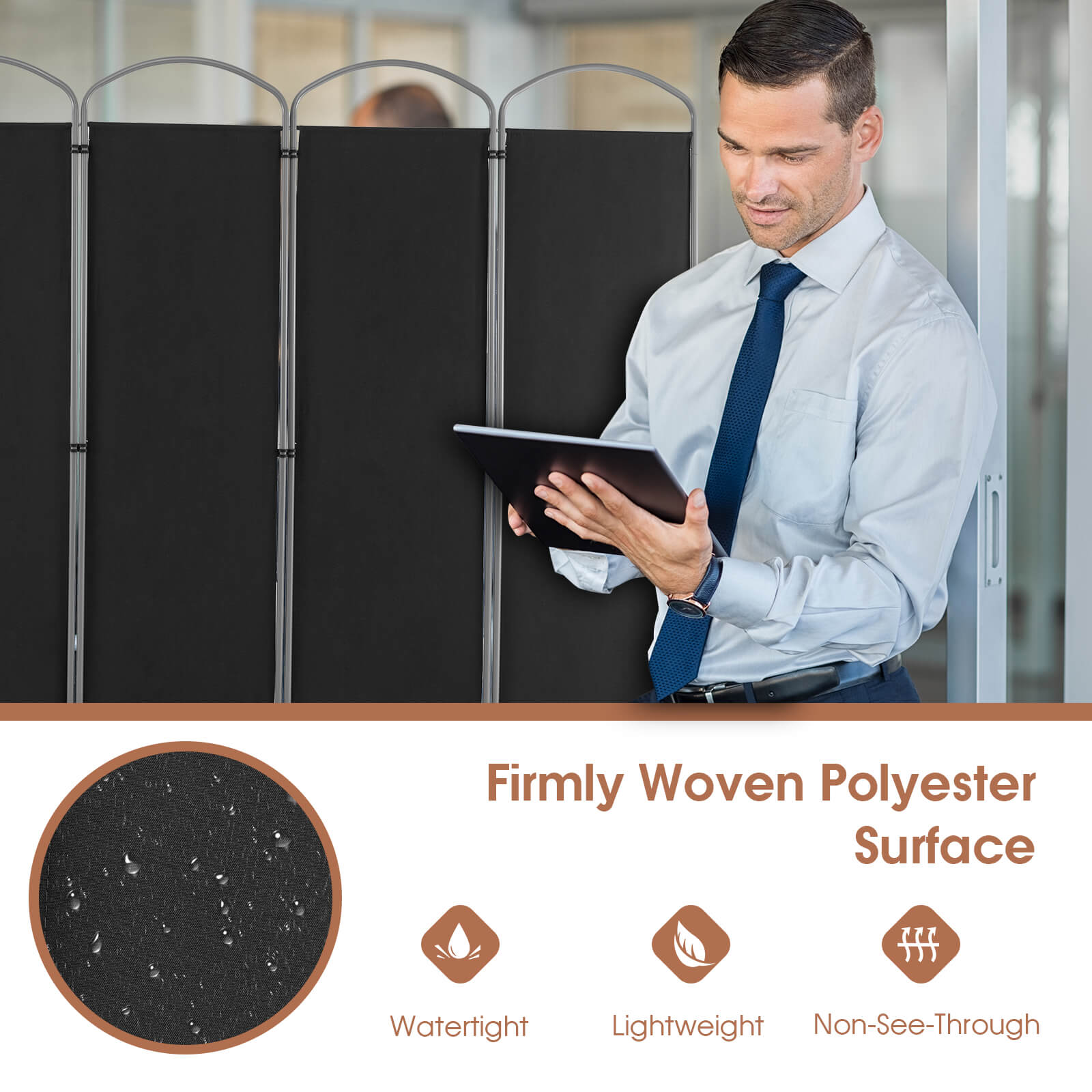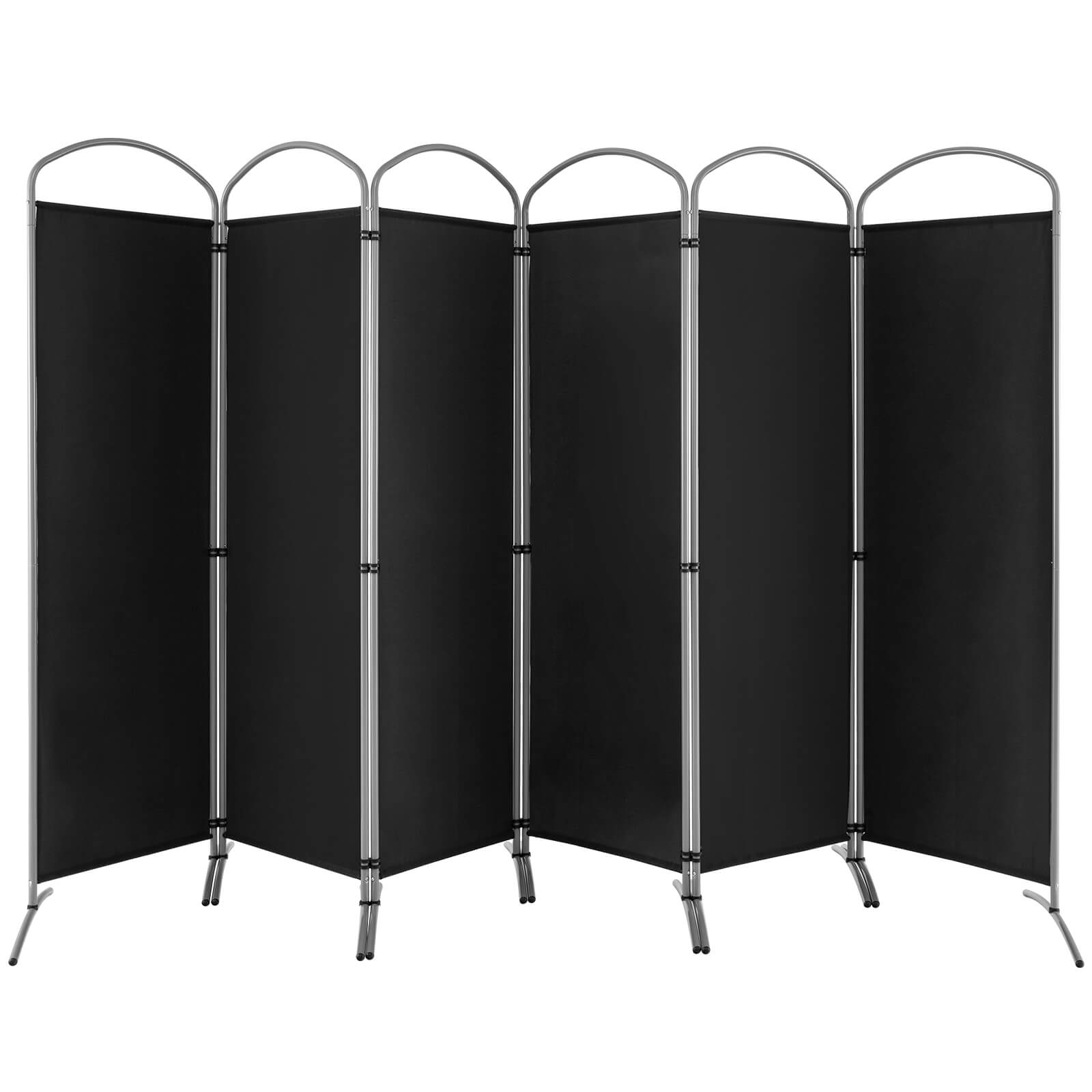 6 Panel Freestanding Fabric Room Divider for Home and Office-Black