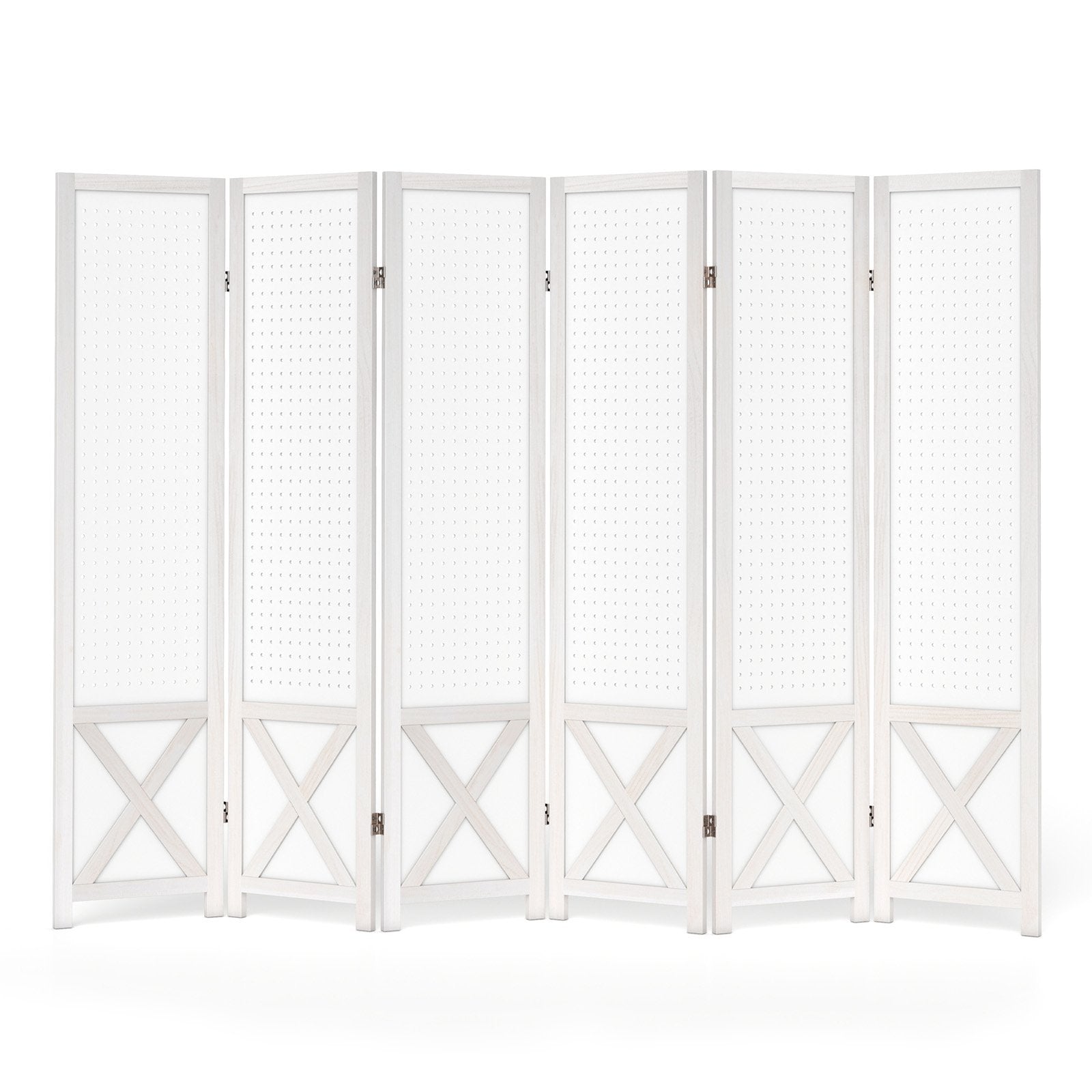 6-Panel Pegboard Room Divider with Solid Wood Frame and Metal Hinges