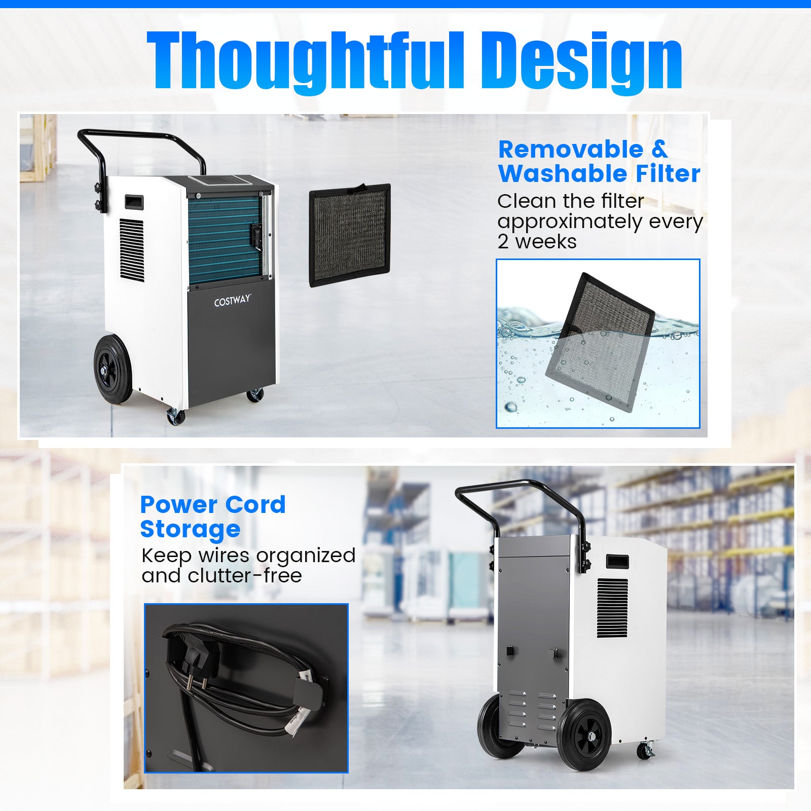 73 L/Day Commercial Dehumidifier with Drain Hose and Timer-White