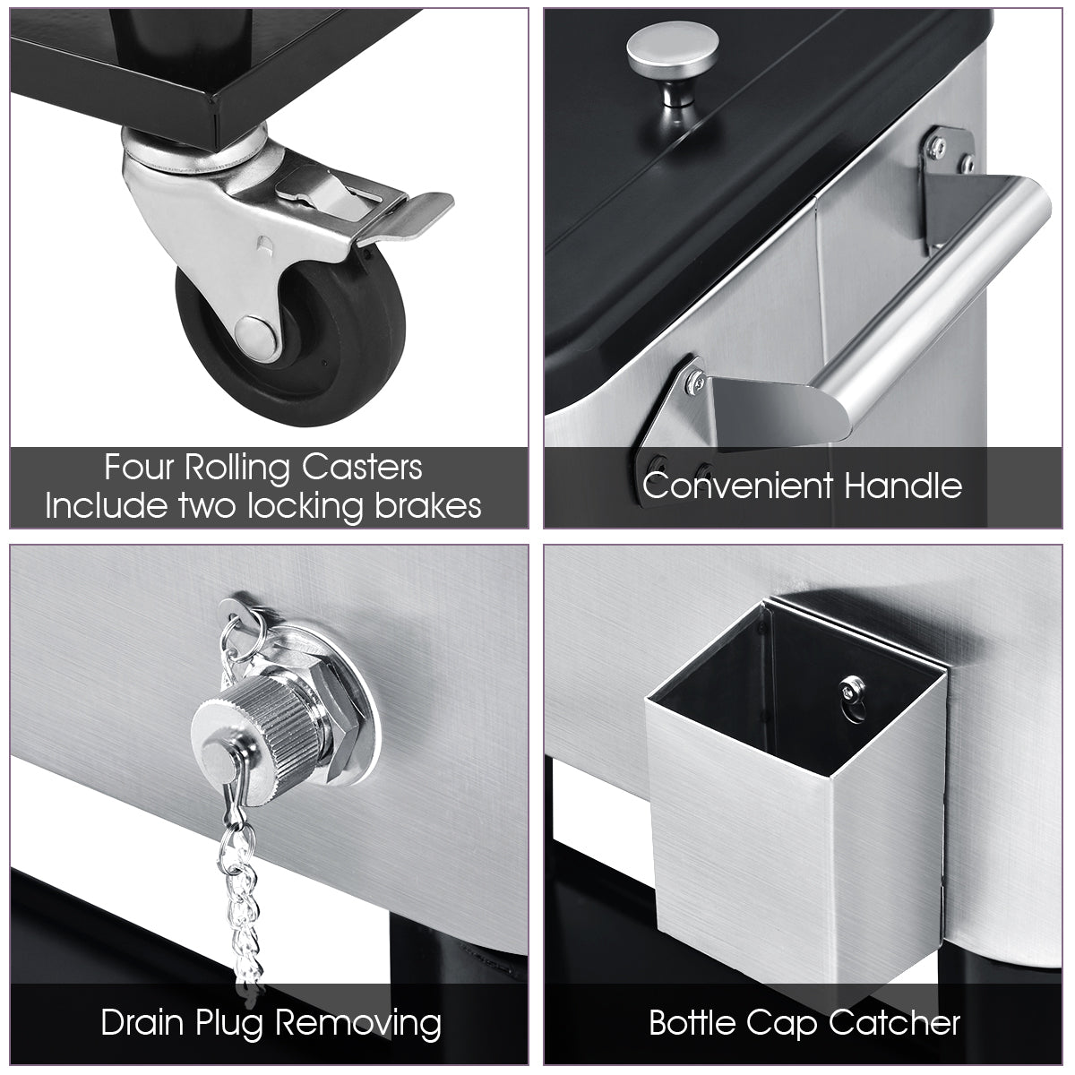 76L Bar Party Drink Ice Bucket Trolley Car Cooler for Outdoor Patio Pool