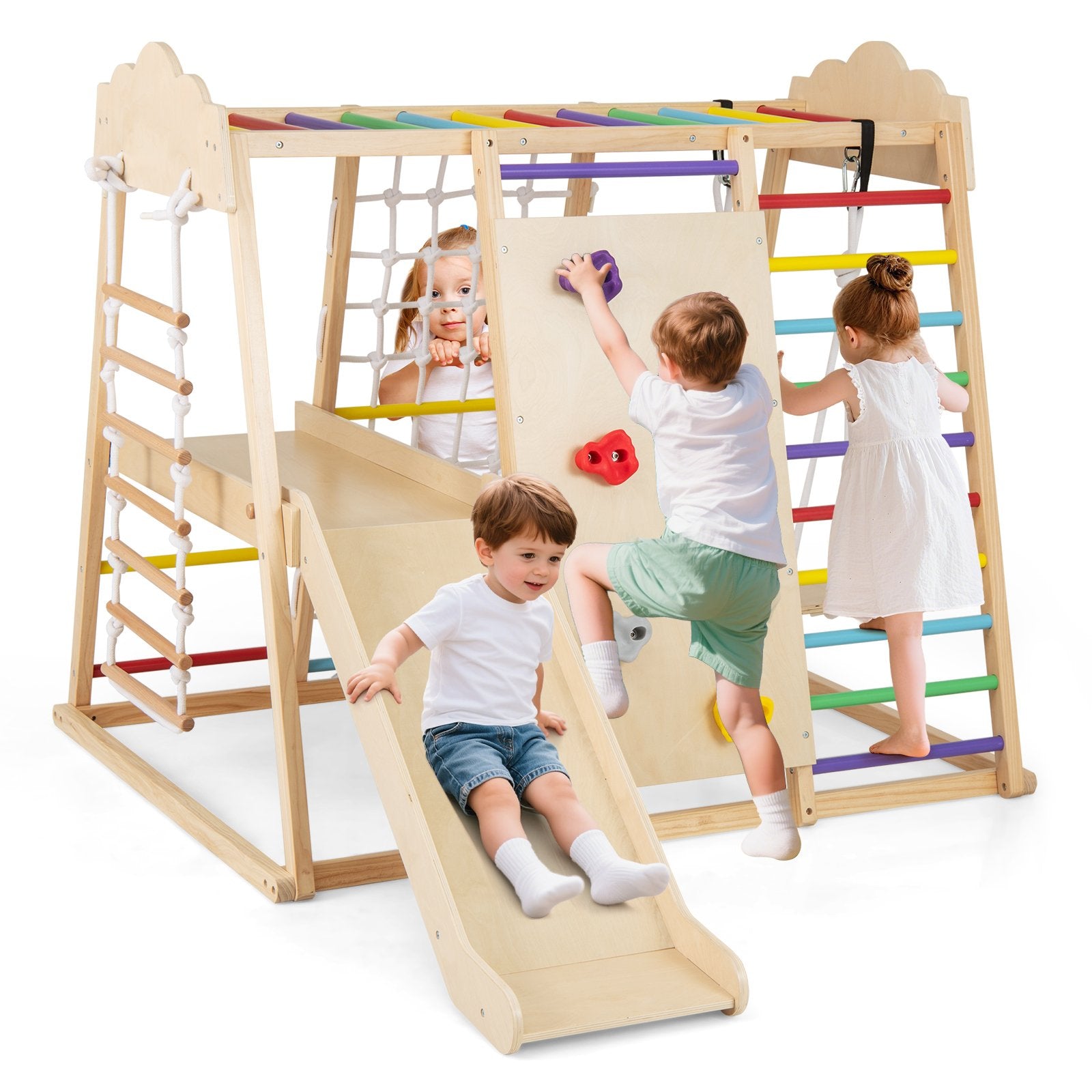 8-in-1 Indoor Jungle Gym for Kids Wooden Montessori Climbing Toys-Colourful