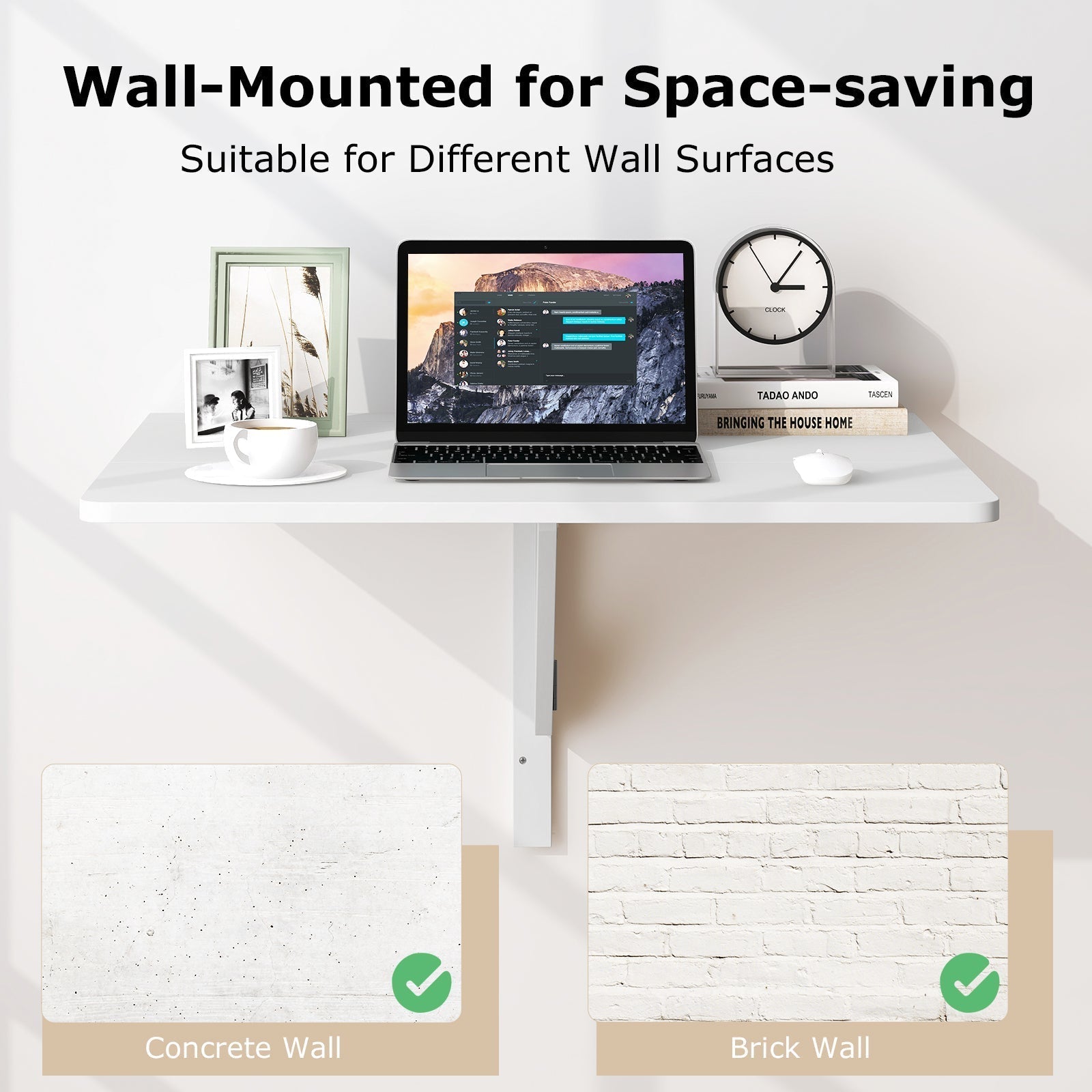 80 x 60 cm Wall Mounted Folding Table Drop-Leaf Floating Writing Desk-White